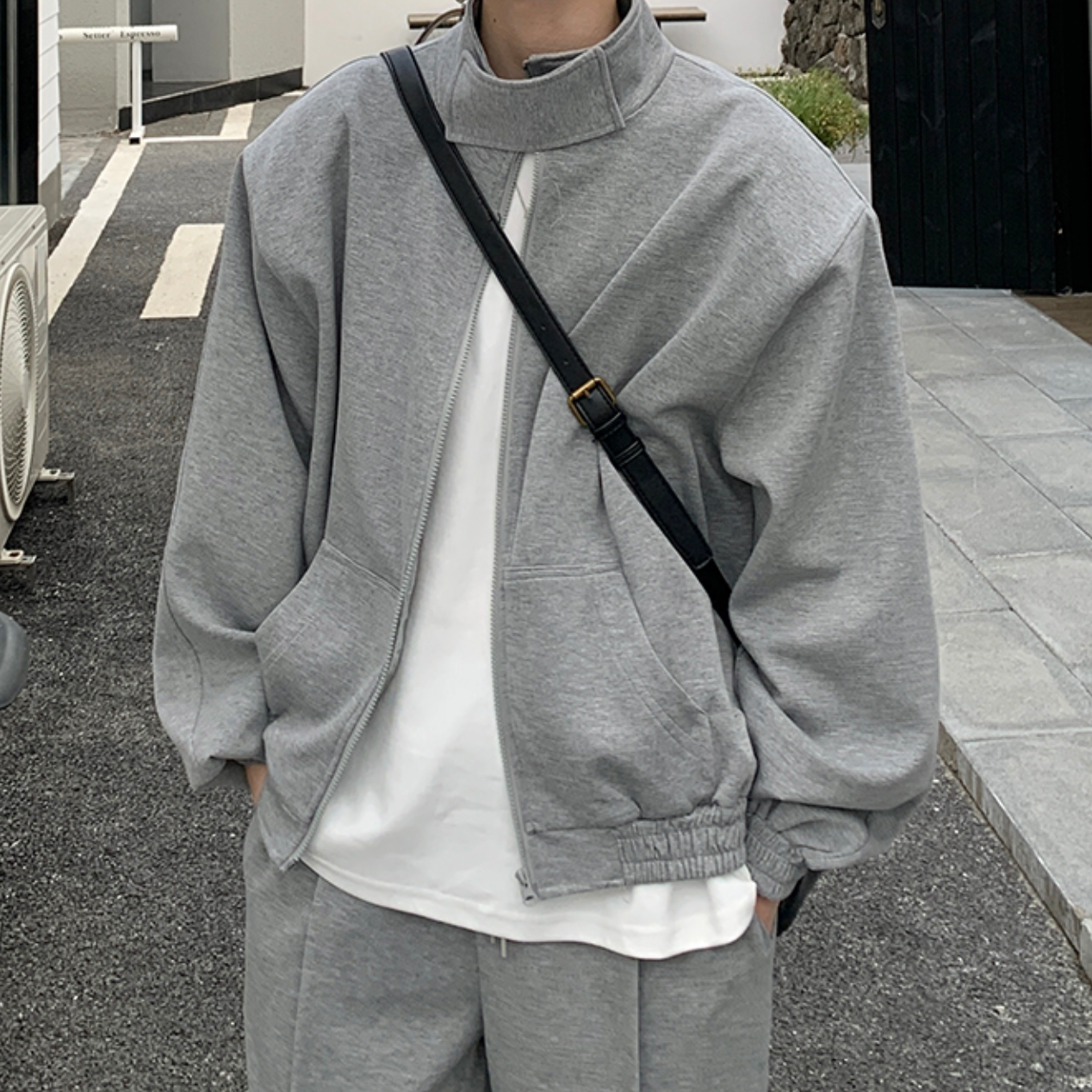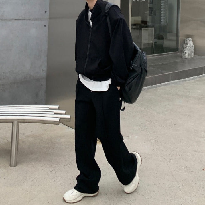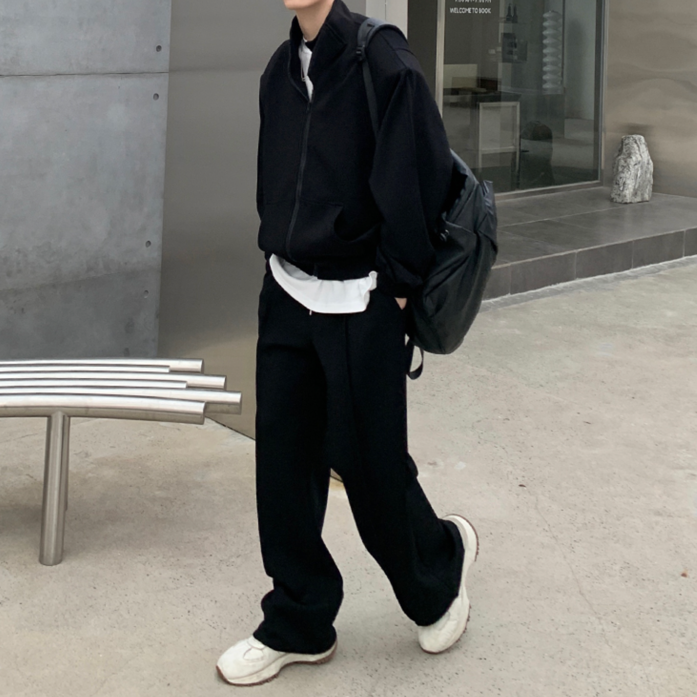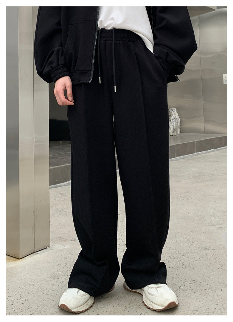 程よいゆるさのシルエットと袖とパンツのセンターに入ったタックが、ダル着に見えさせないポイント。