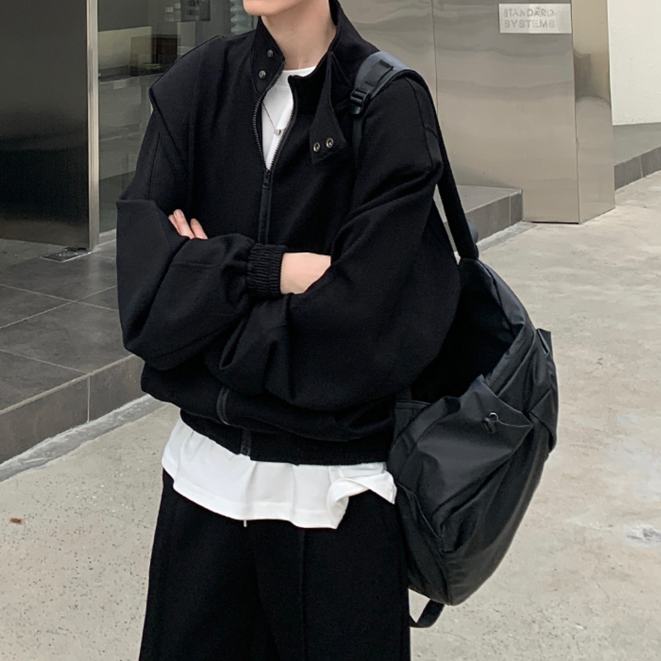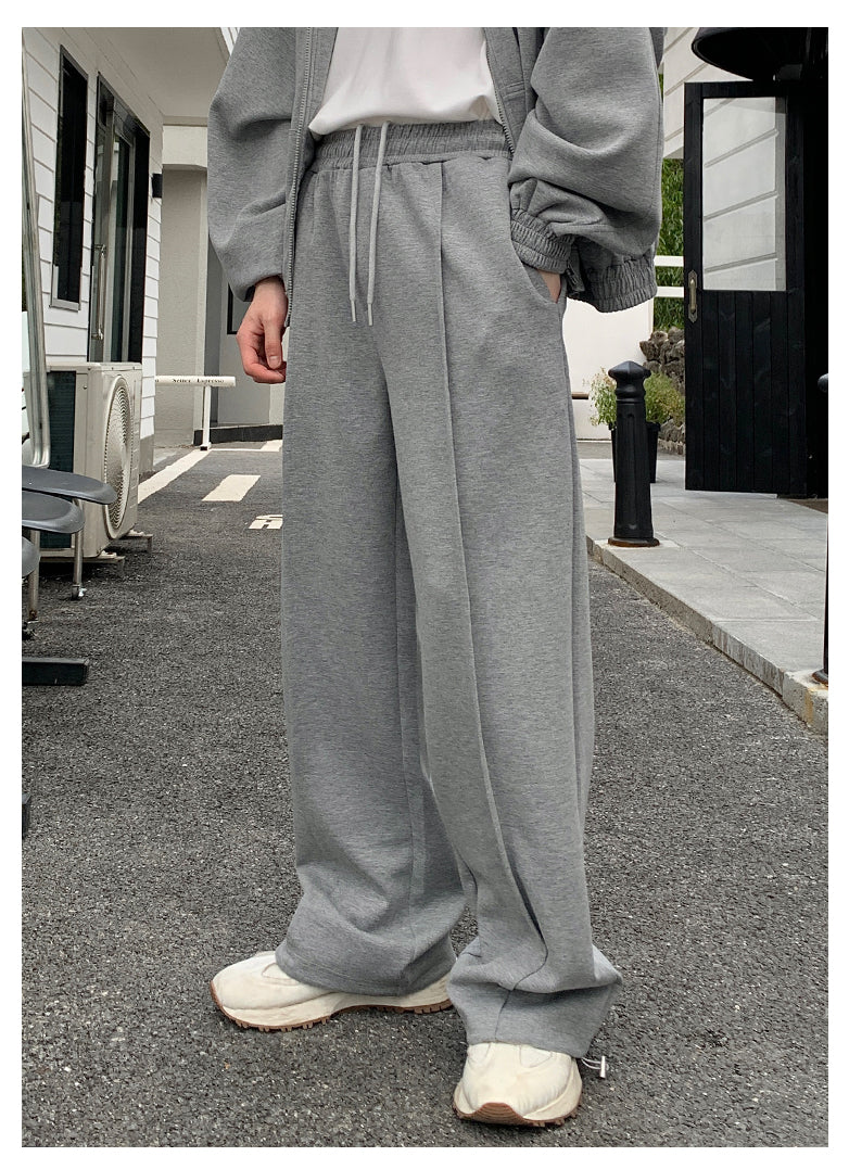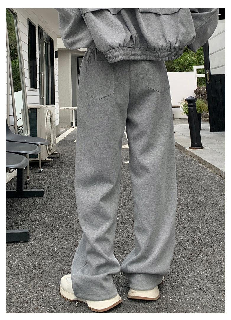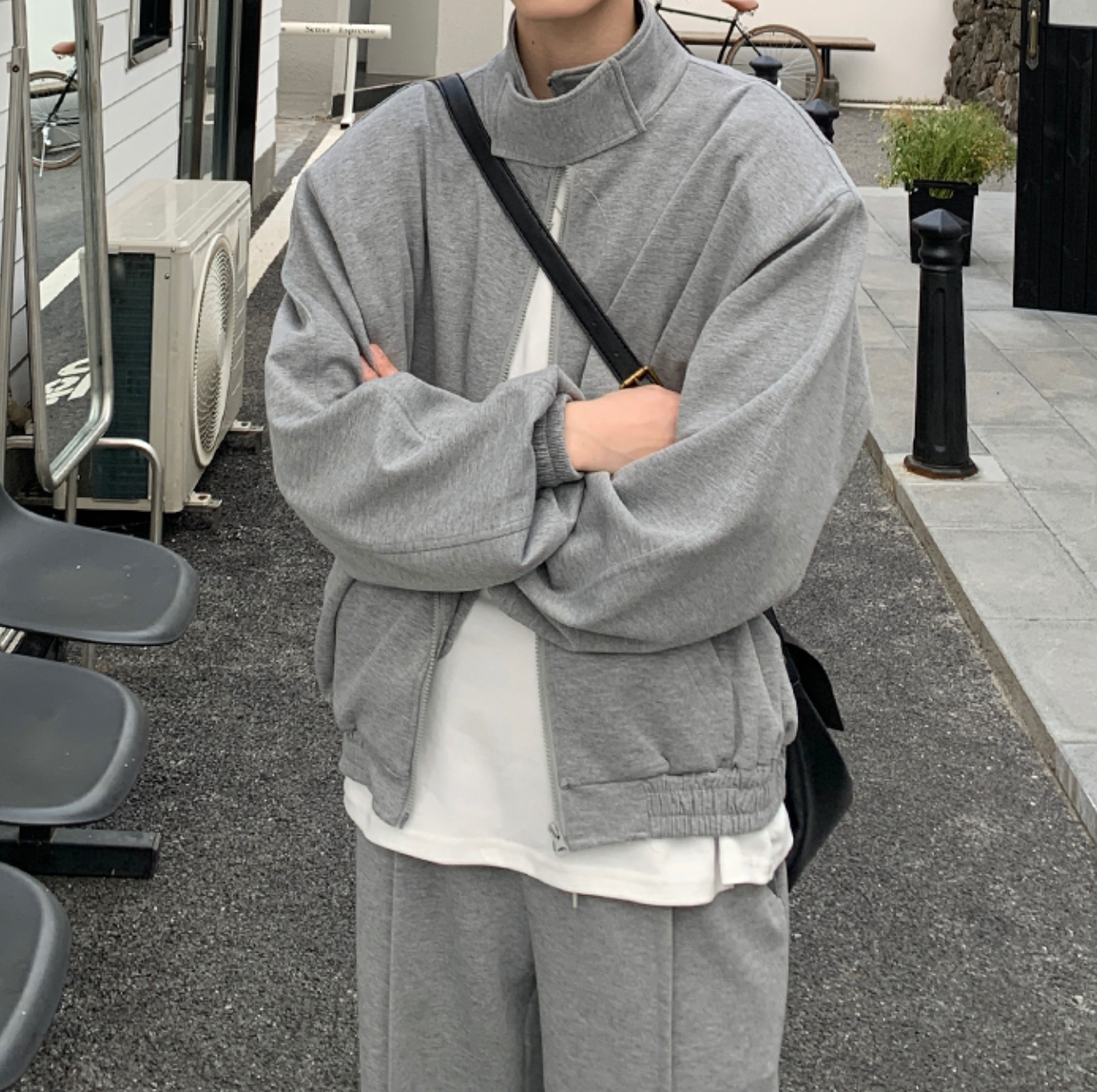 程よいゆるさのシルエットと袖とパンツのセンターに入ったタックが、ダル着に見えさせないポイント。