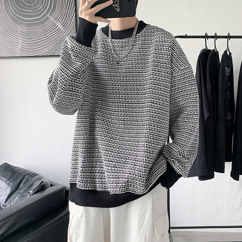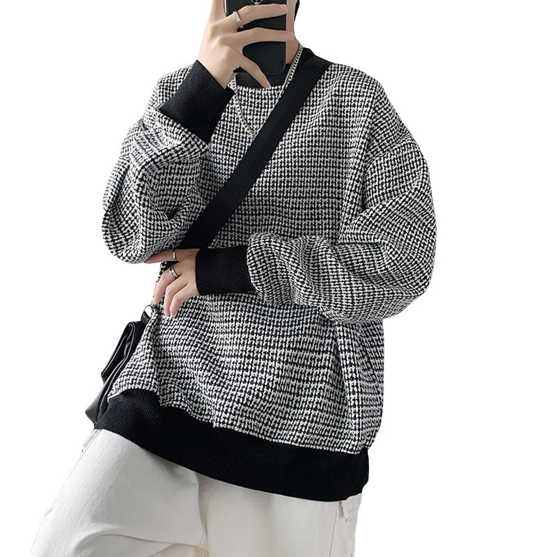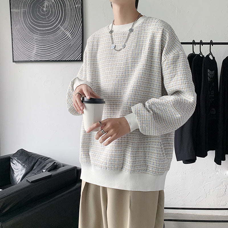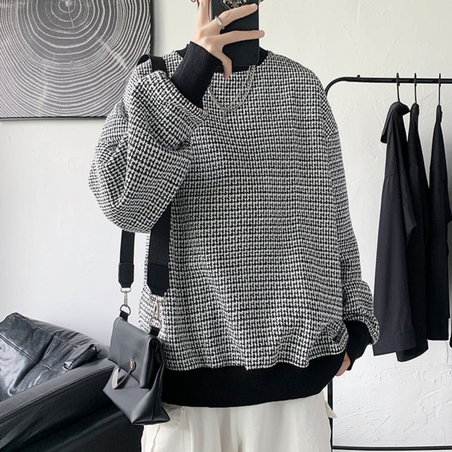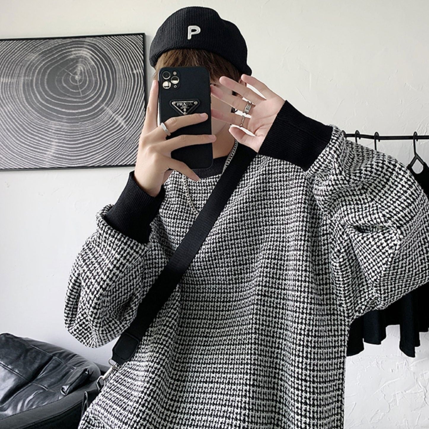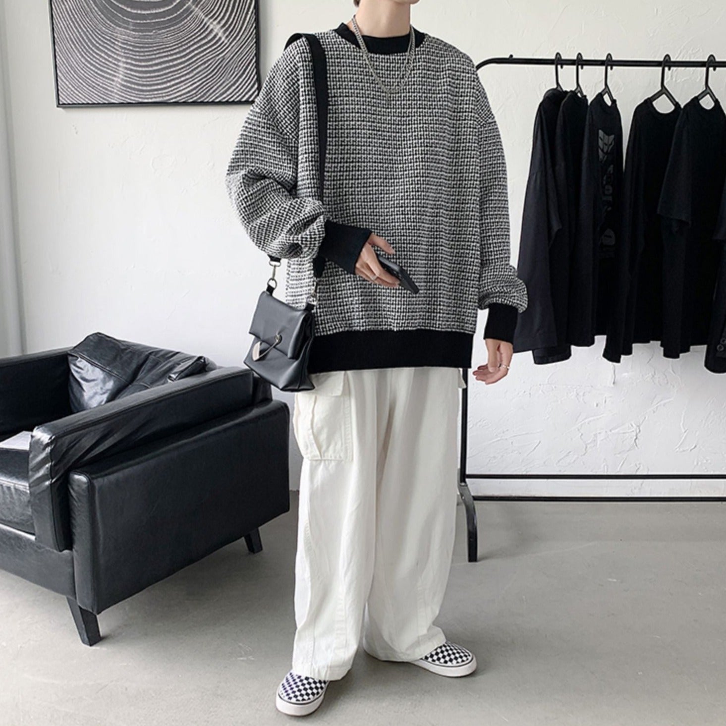 きれいめな韓国ストリートコーデをしたい人にぴったりのチェックニット。