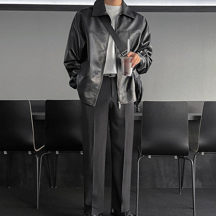 白T・スラックスと合わせて、モノトーンでコーデをまとめると雰囲気が出てかっこいい!