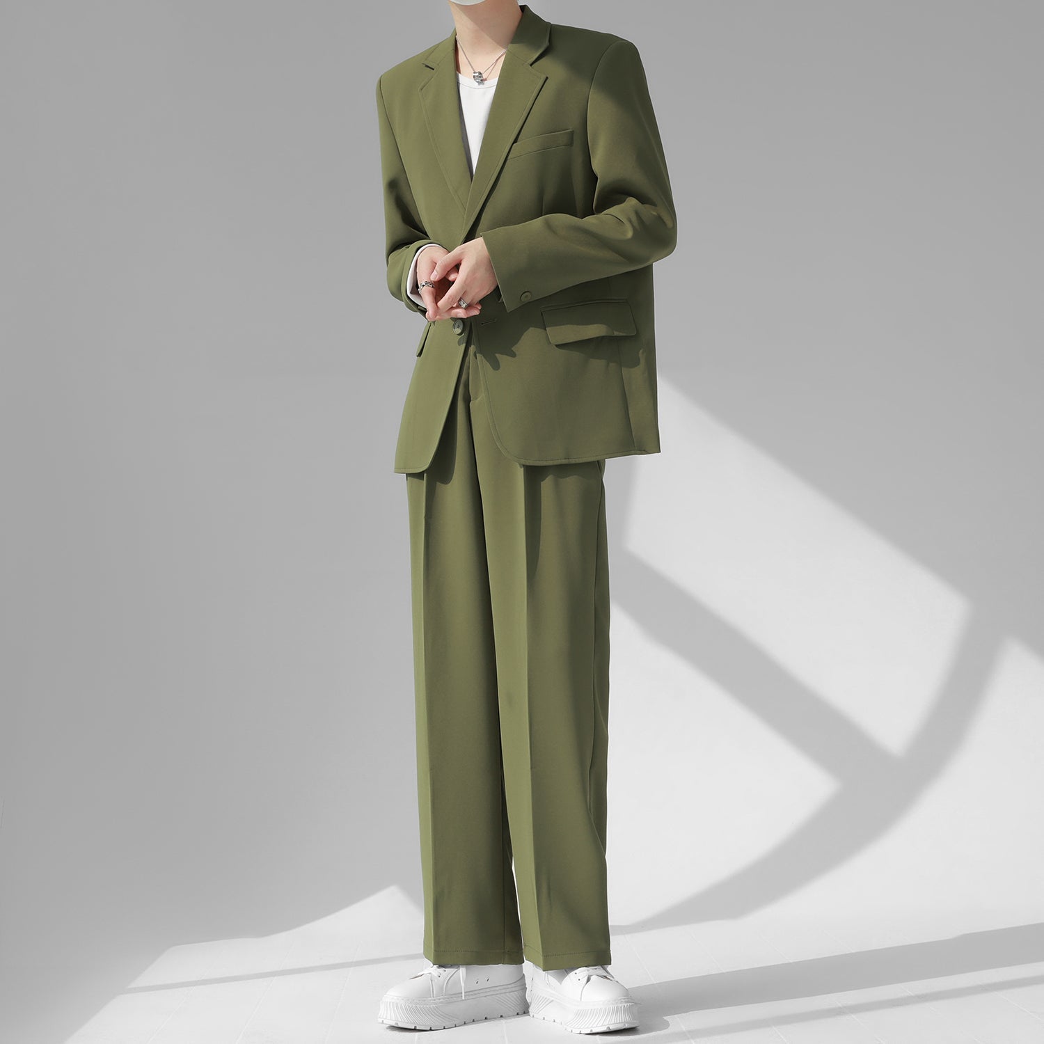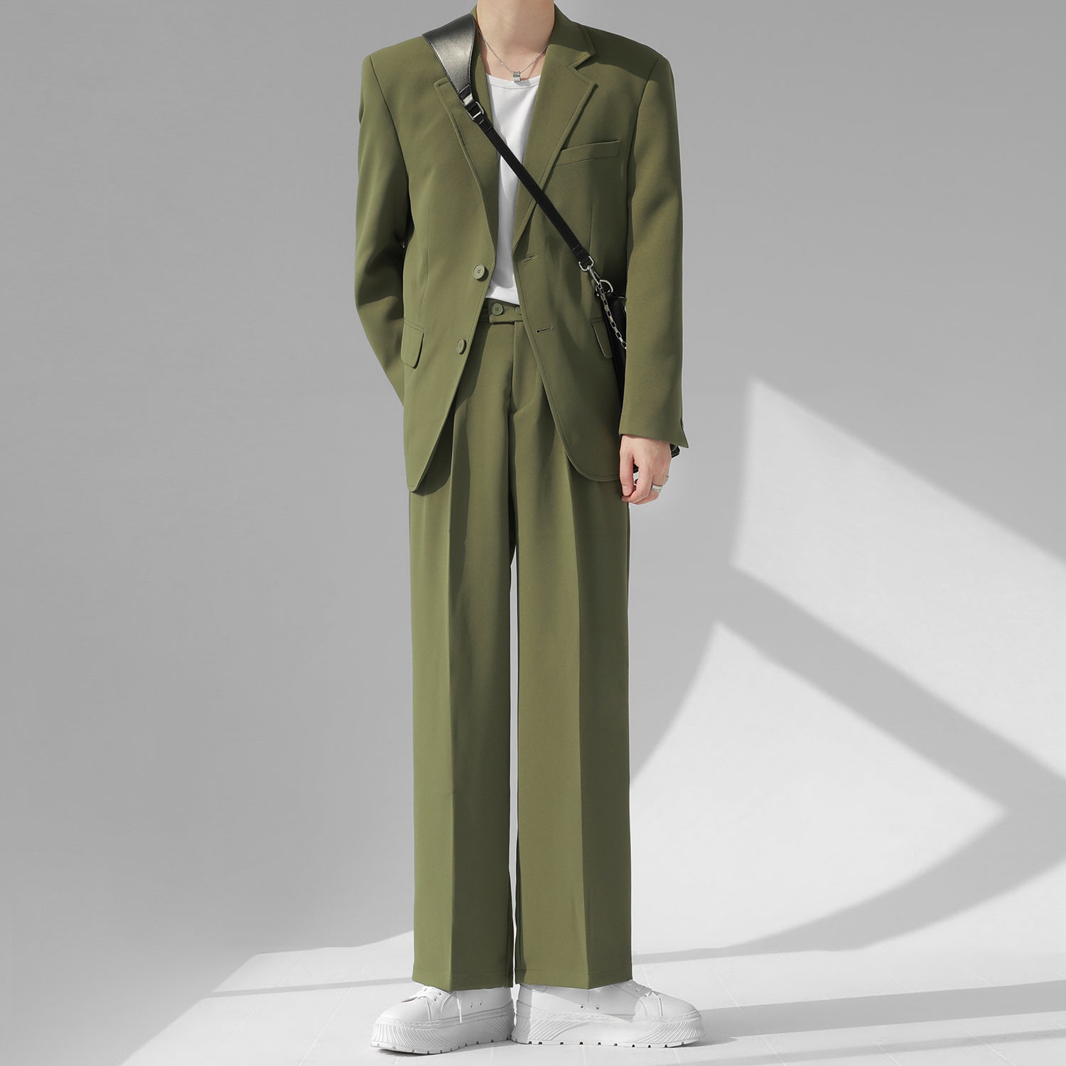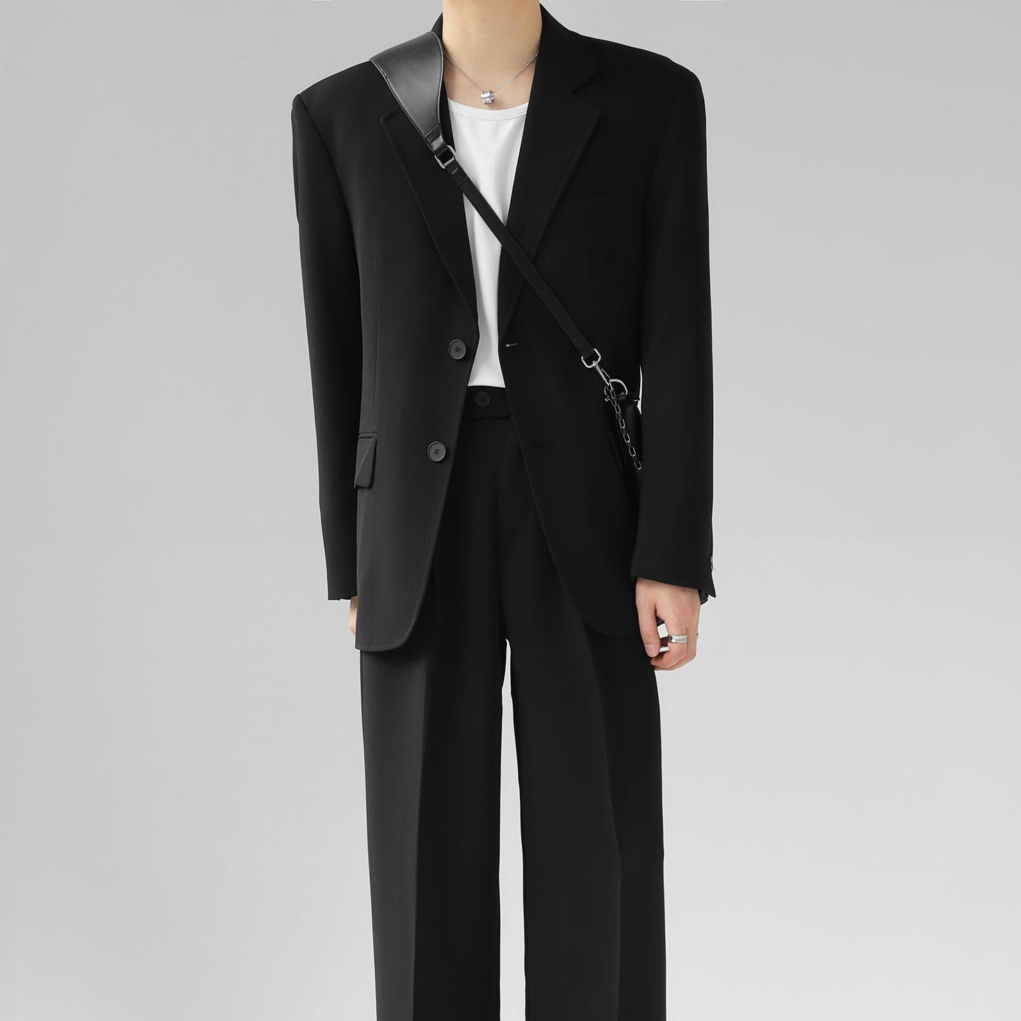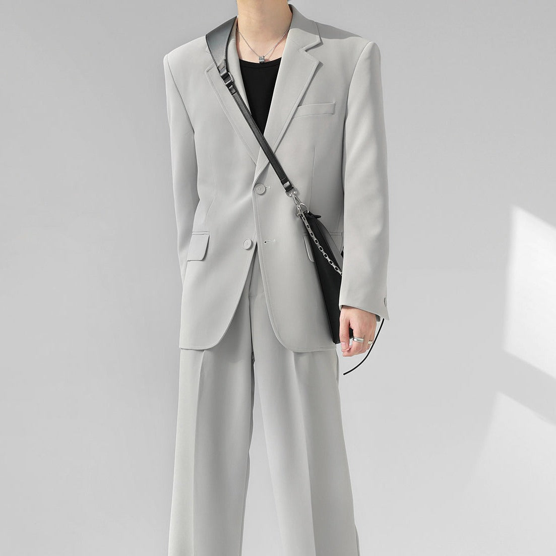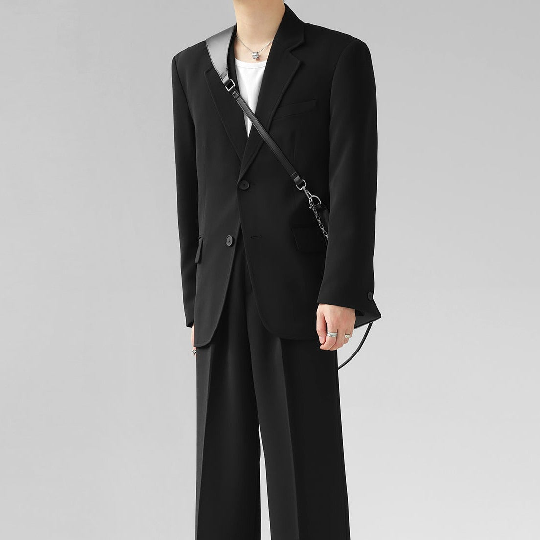 高級感溢れるシンプルなスリムセットアップ。