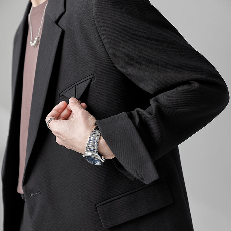 長すぎず、短すぎない着丈で、セットアップでかっこよく着こなすのはもちろん、抜け感のあるジャケットと脚長効果が抜群のスラックスを別々に着ていただけることもできるおすすめのアイテム✨