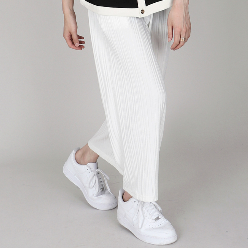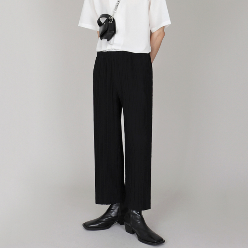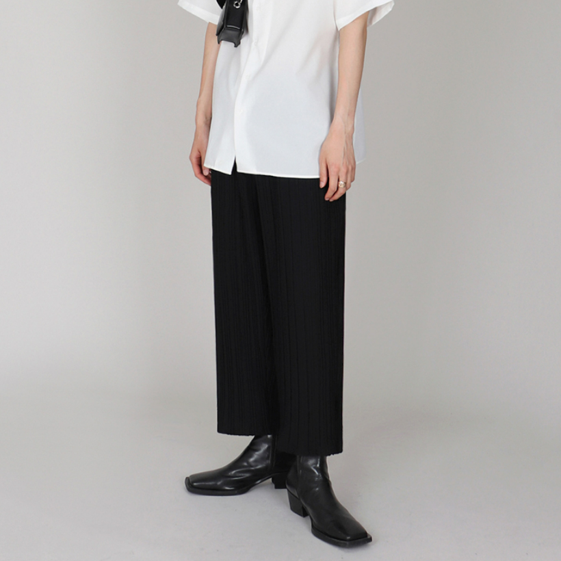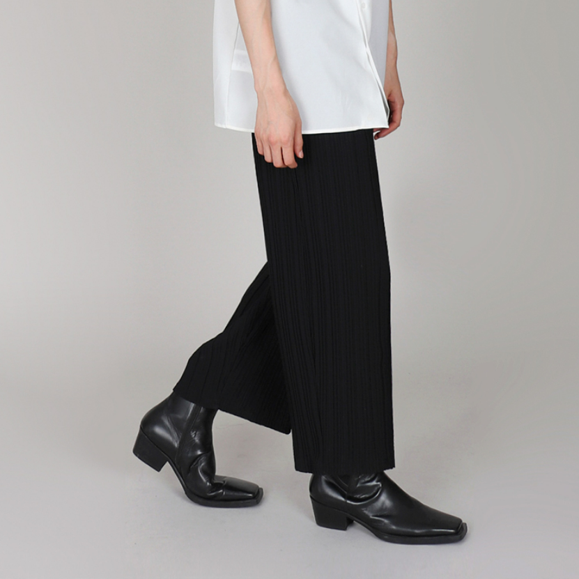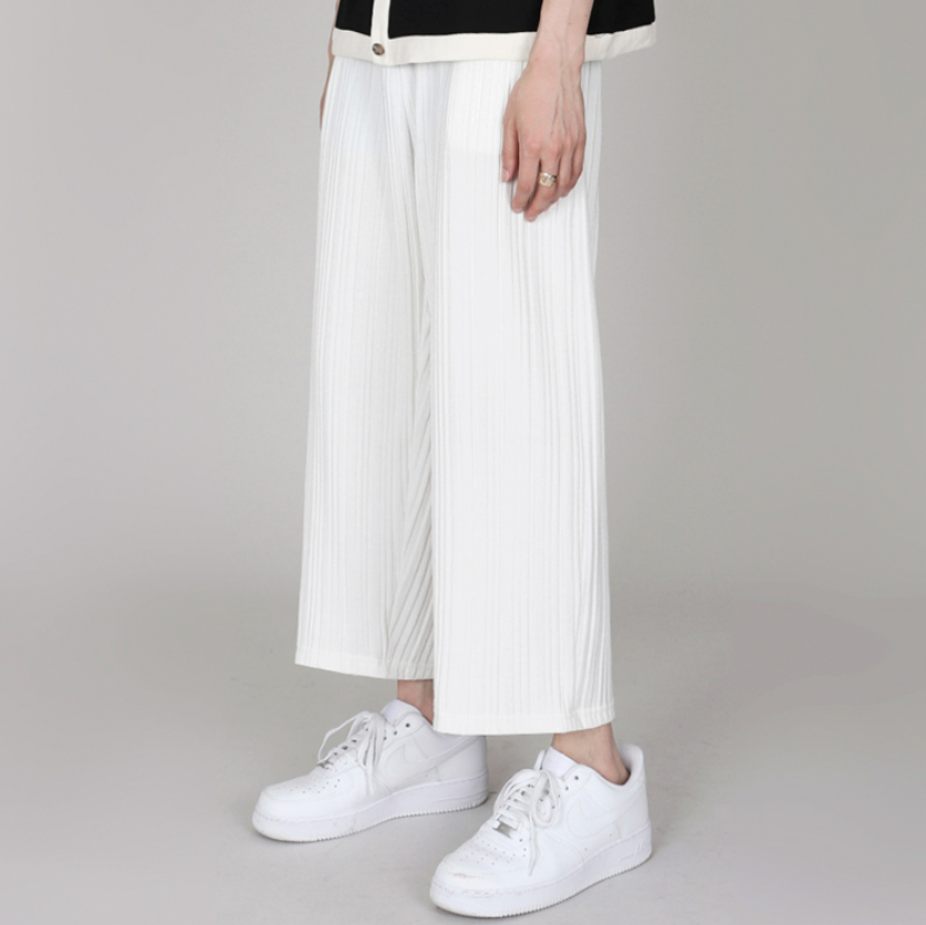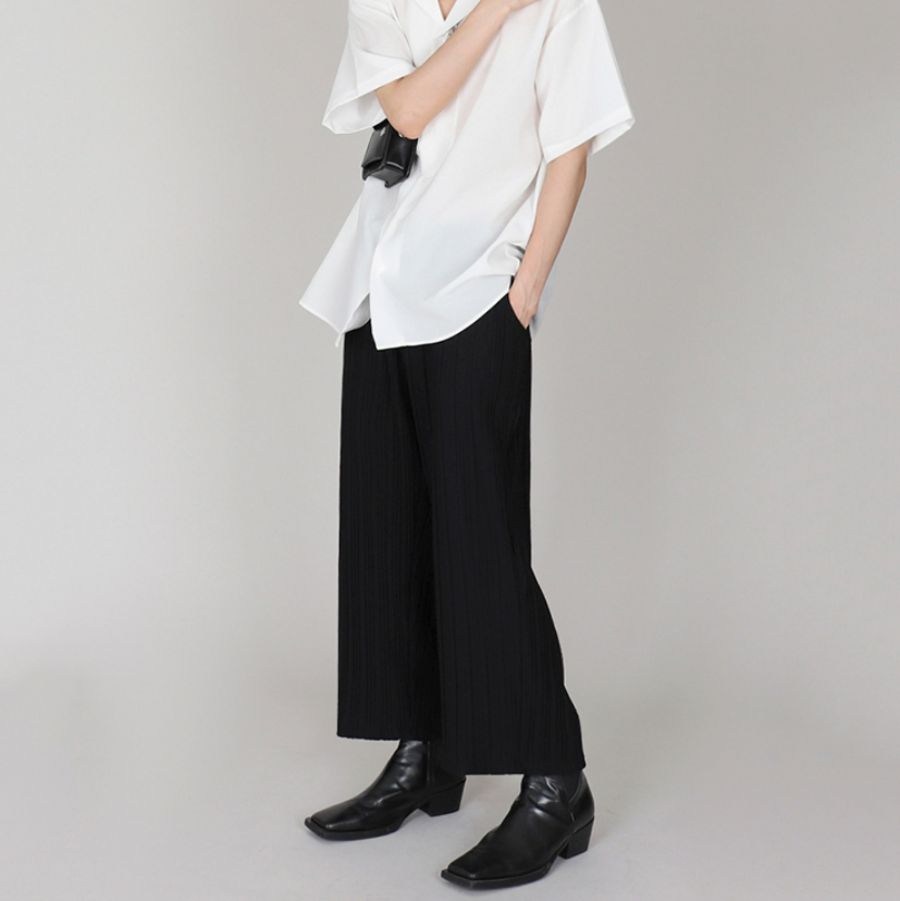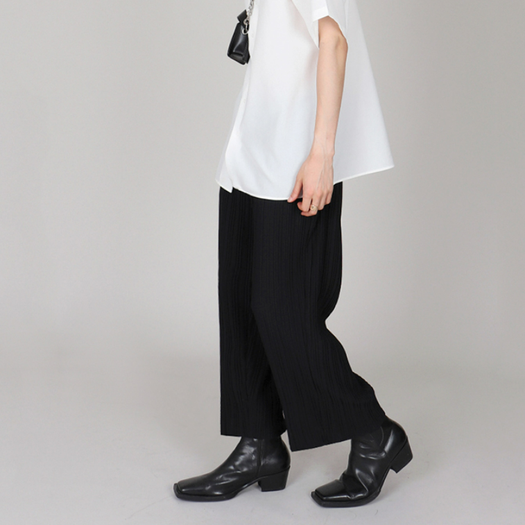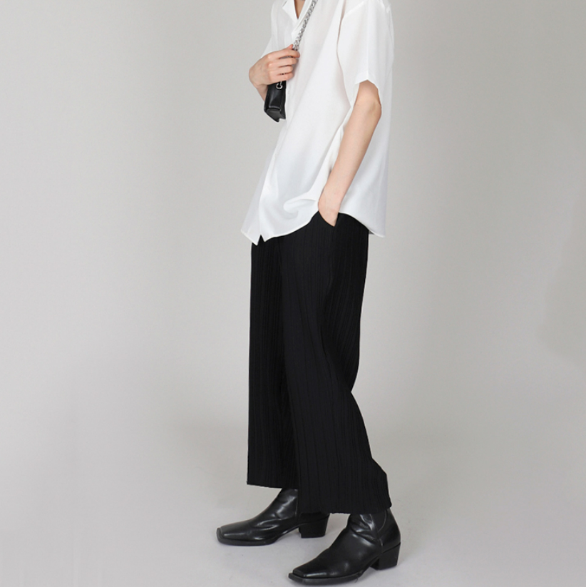 清涼感があるプリーツの素材でデザインされた大きめのサイズ感で細見え効果も抜群の韓国っぽワイドパンツ🇰🇷