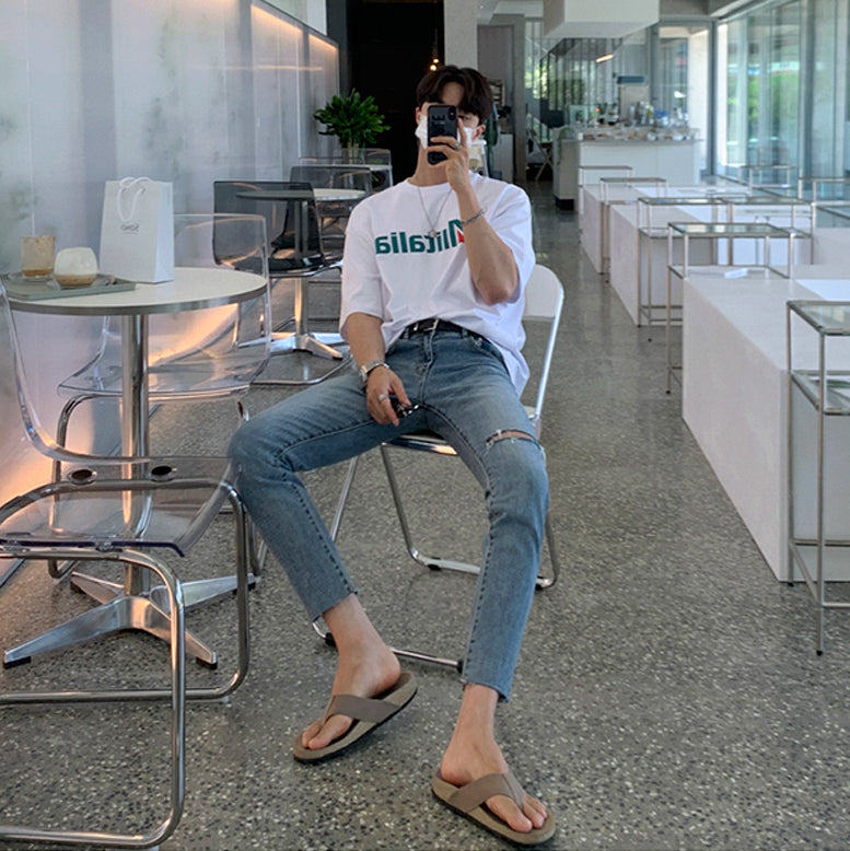 スリムなシルエットで美しいデザインのウォッシュデニム。