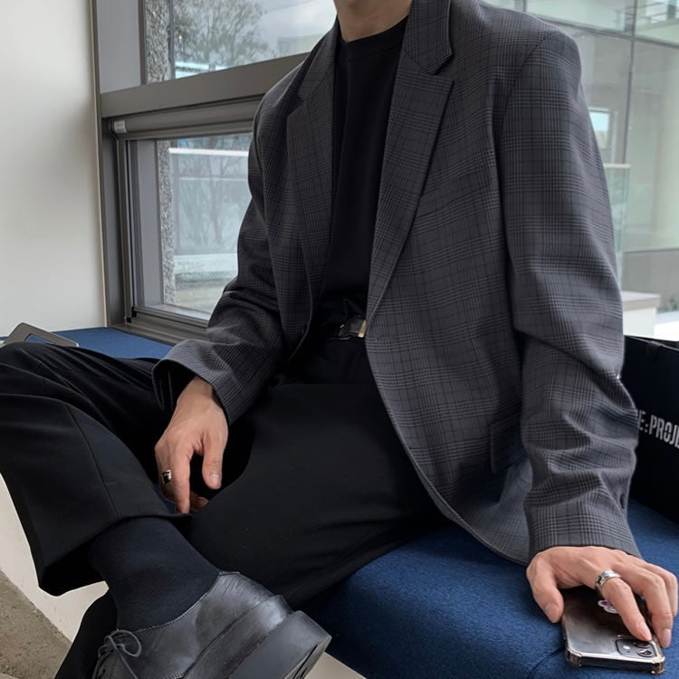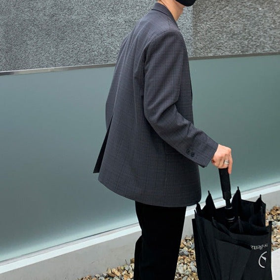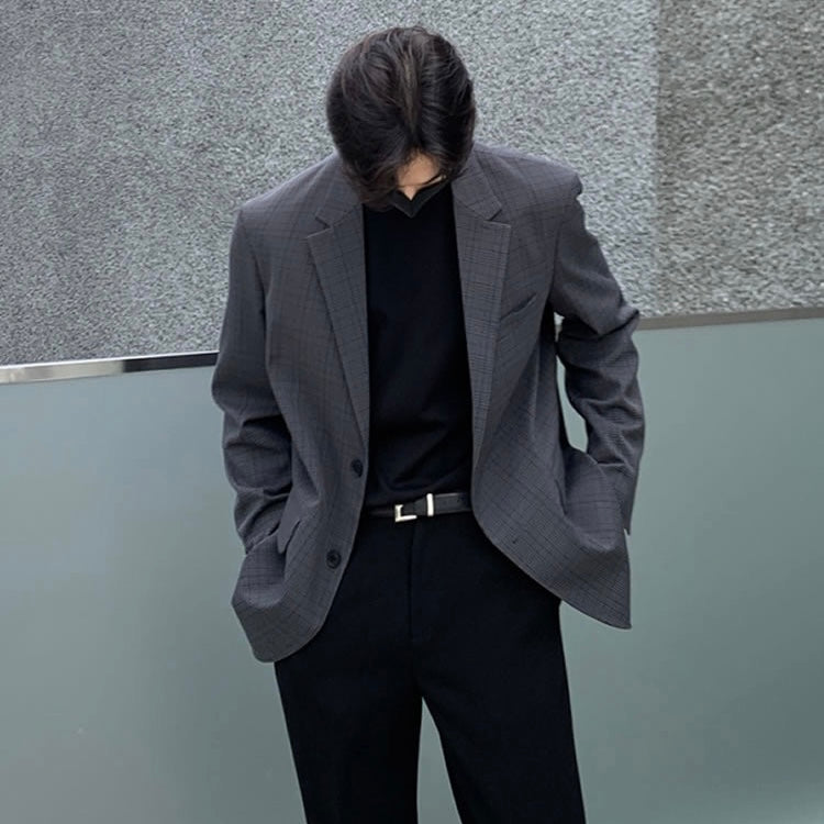 フォーマルな場面でもしっかり使用できるシンプルなチェックジャケット。