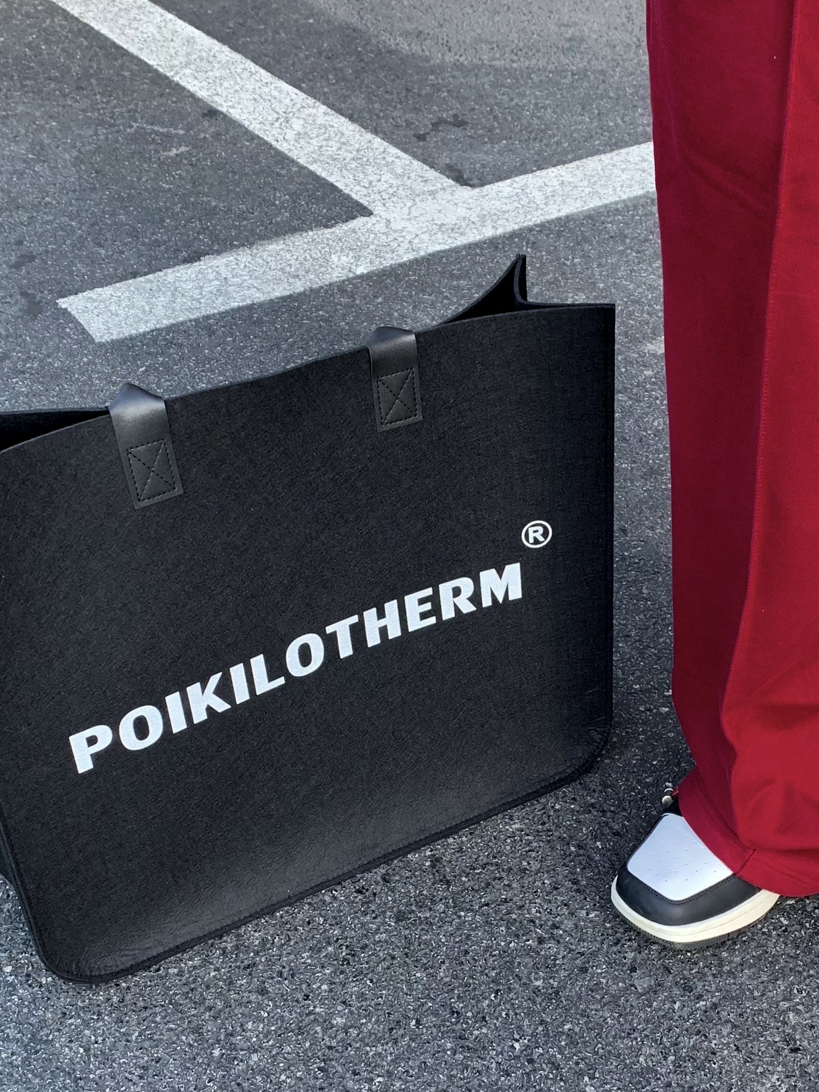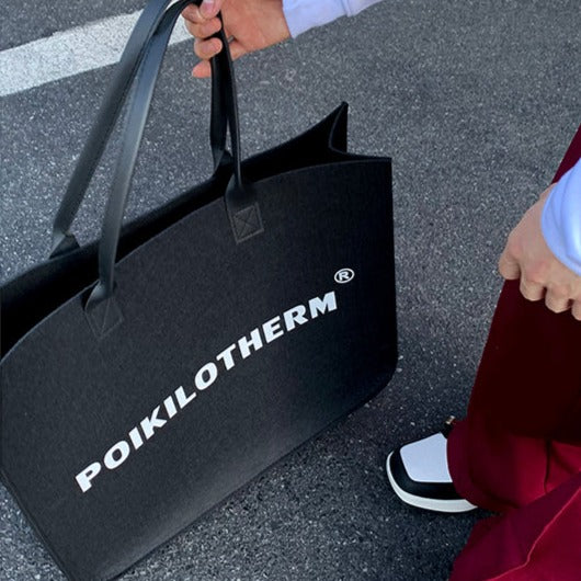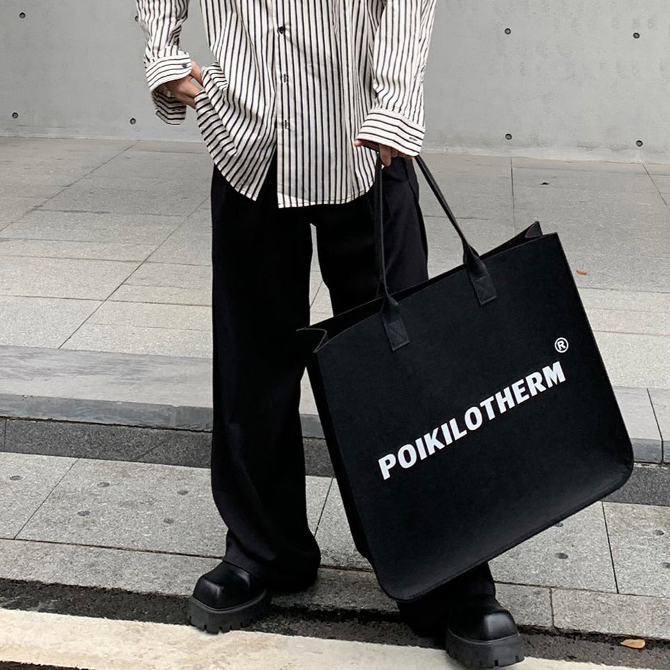 モードコーデに合わせたいシンプルなロゴトートバッグ。