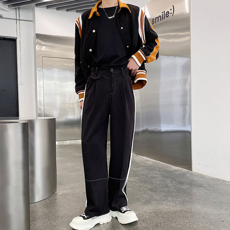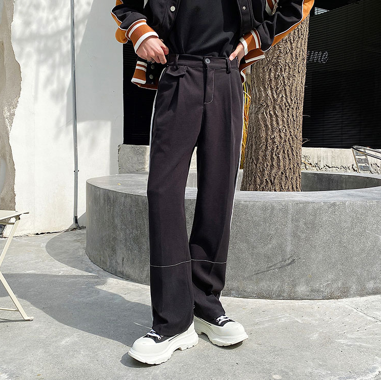ストレートのシルエットに再度ラインが入ったデザインのボトムス◎