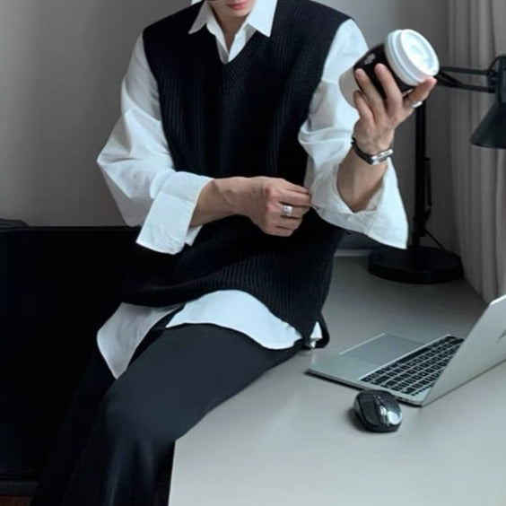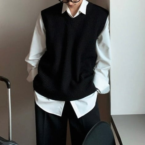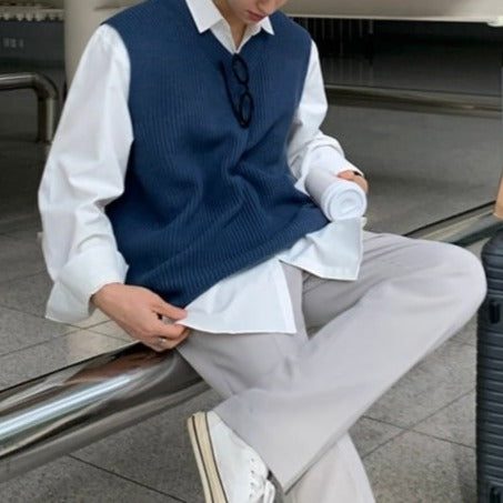 ルーズ感がお洒落な韓国っぽVネックベスト。