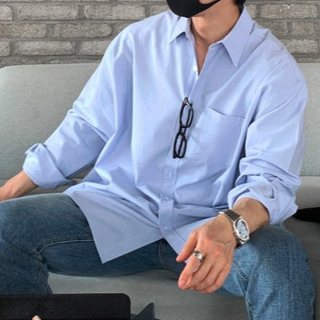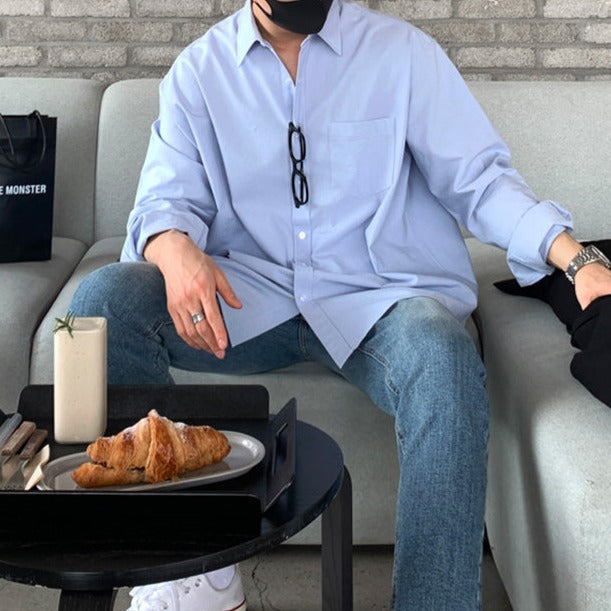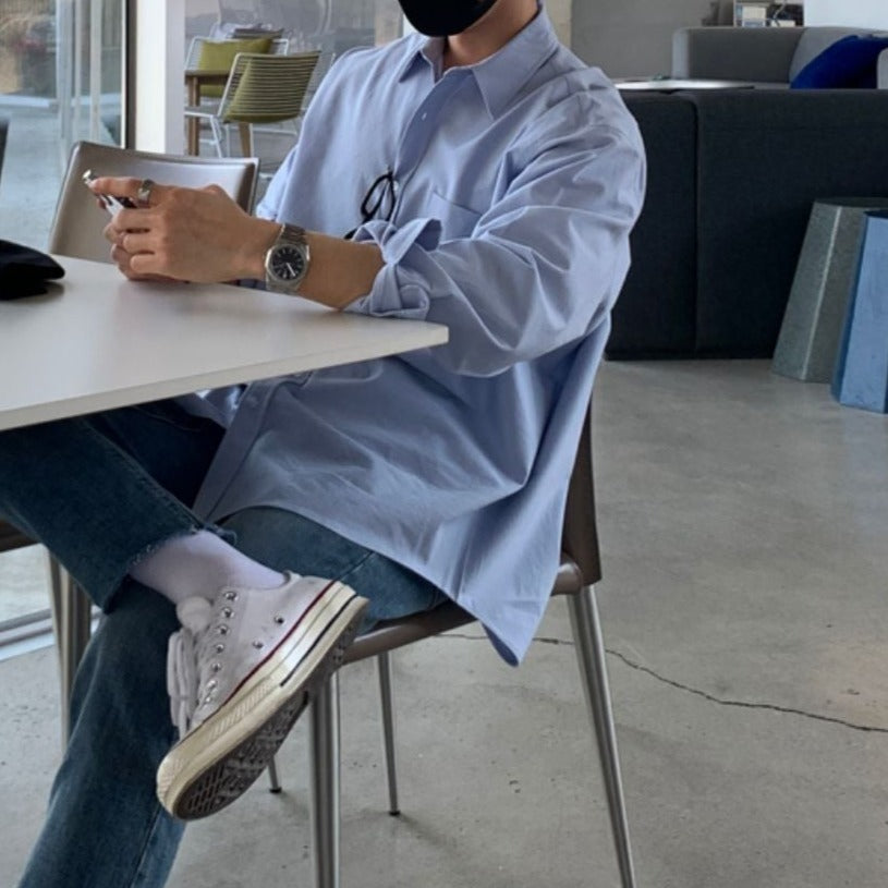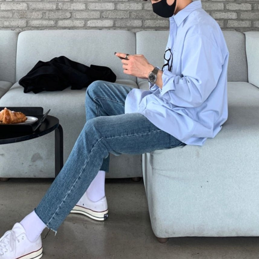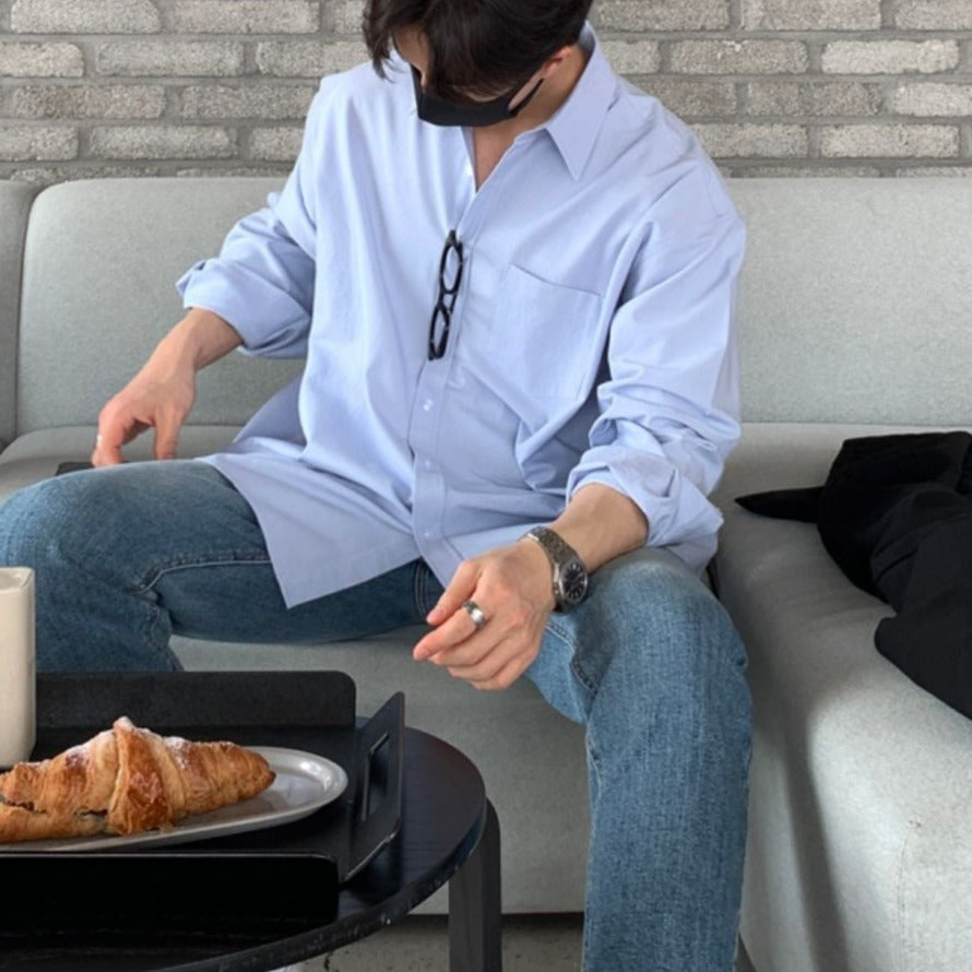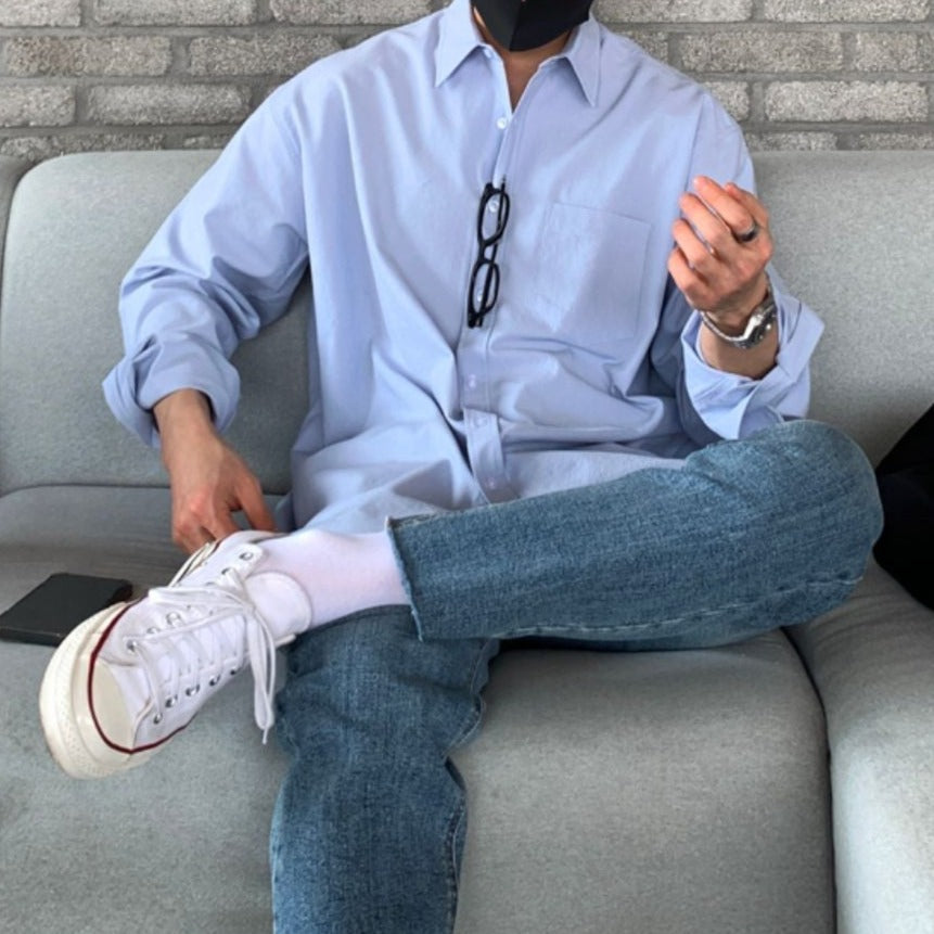 春からのシーズンに大活躍する韓国っぽライトブルーシャツ✨