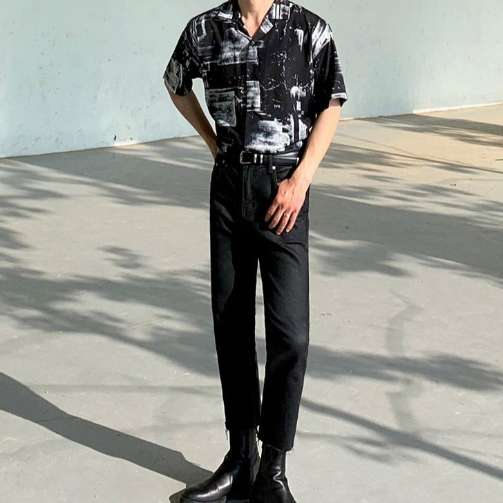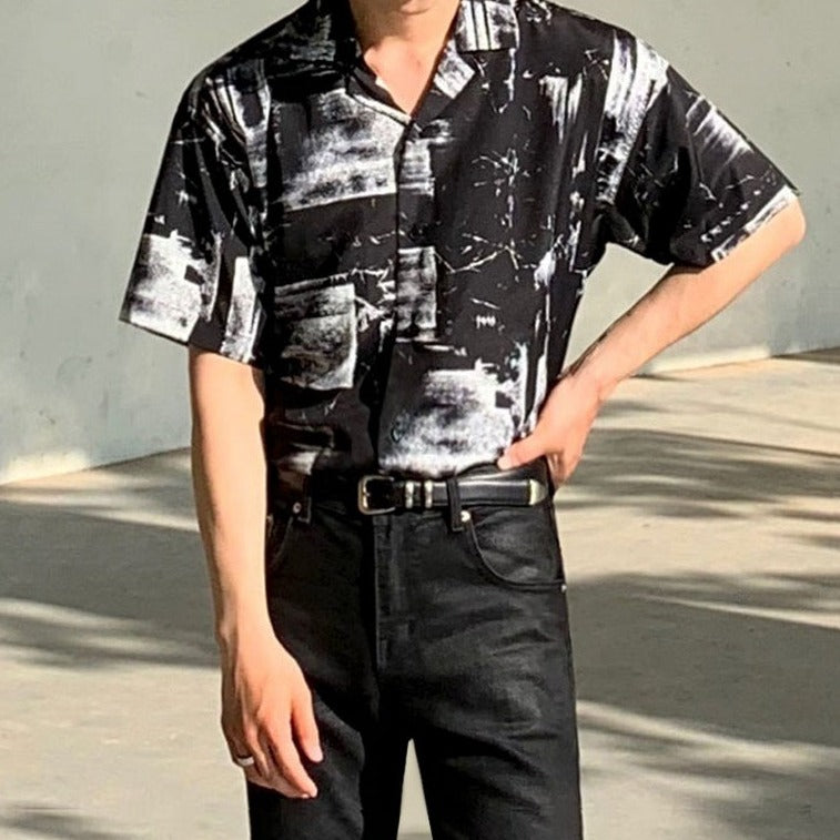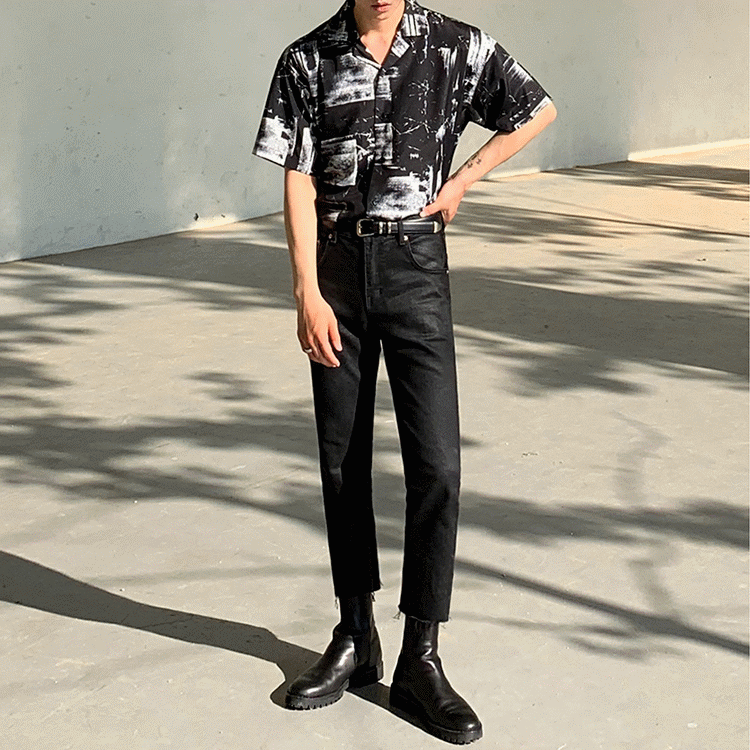 A Korean-style patterned shirt that looks stylish on its own.