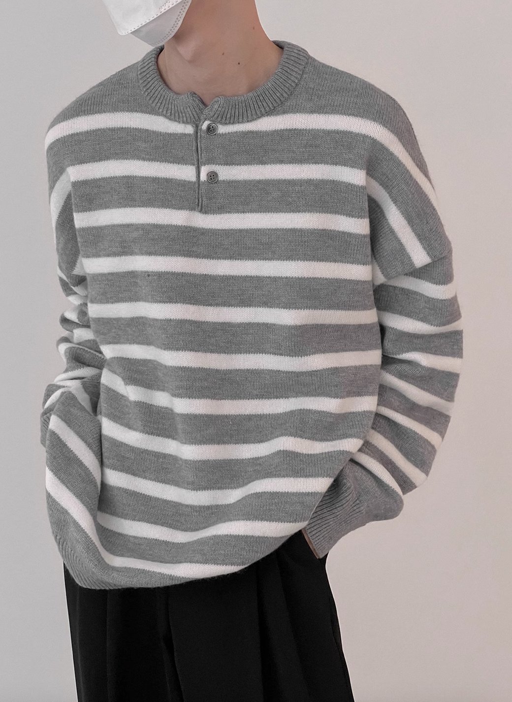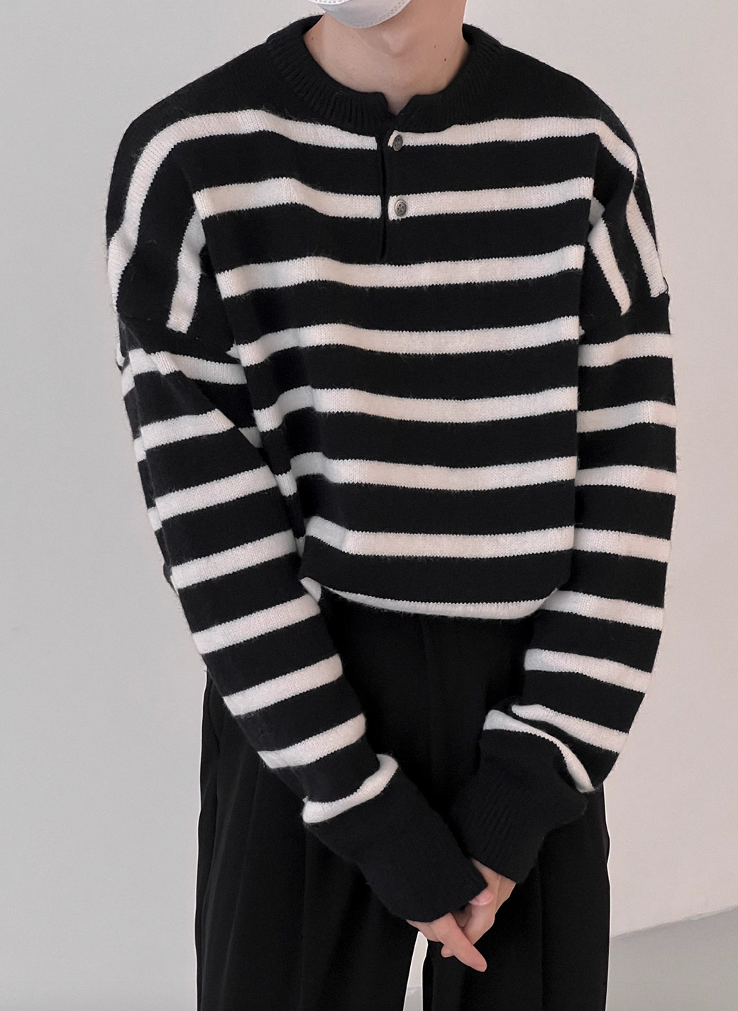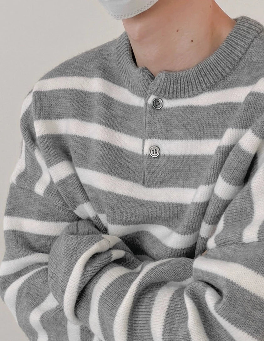 Half button small border knit BZ15010