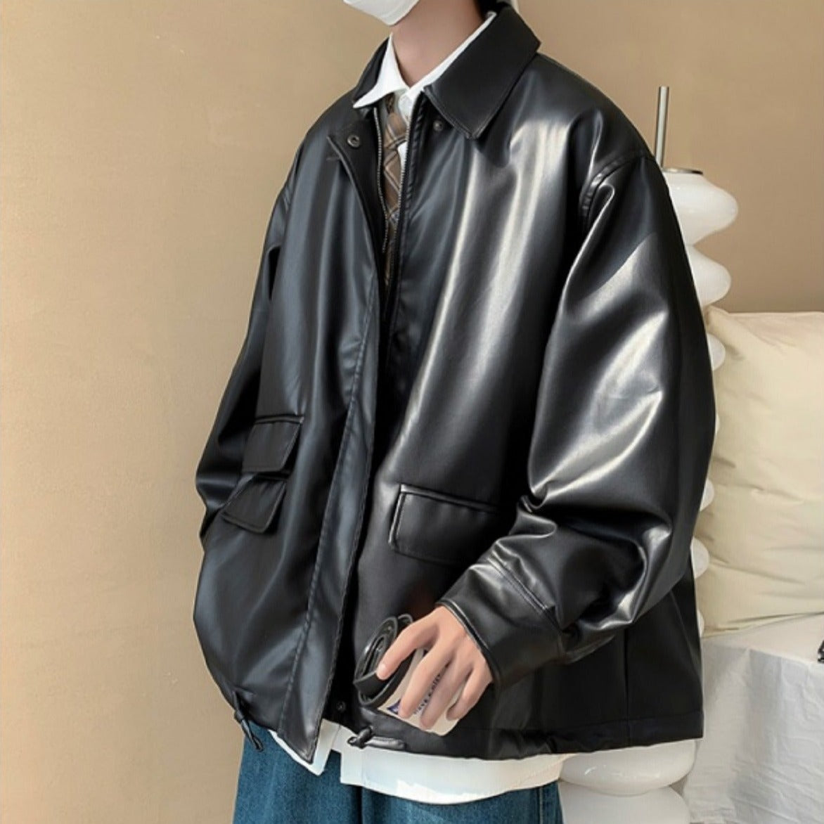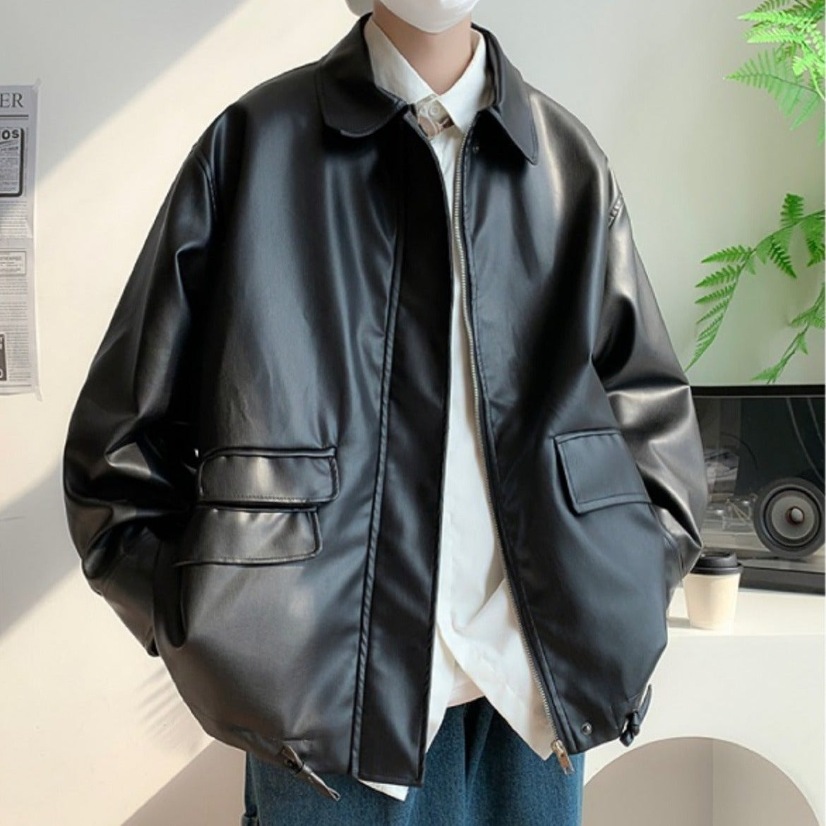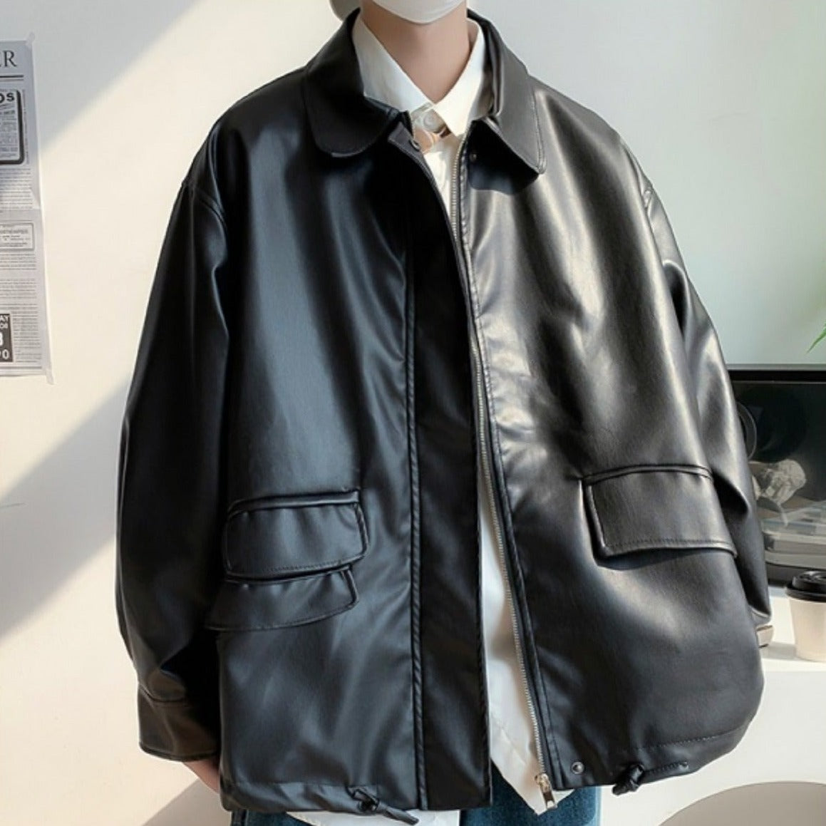 Leather jacket with large pockets