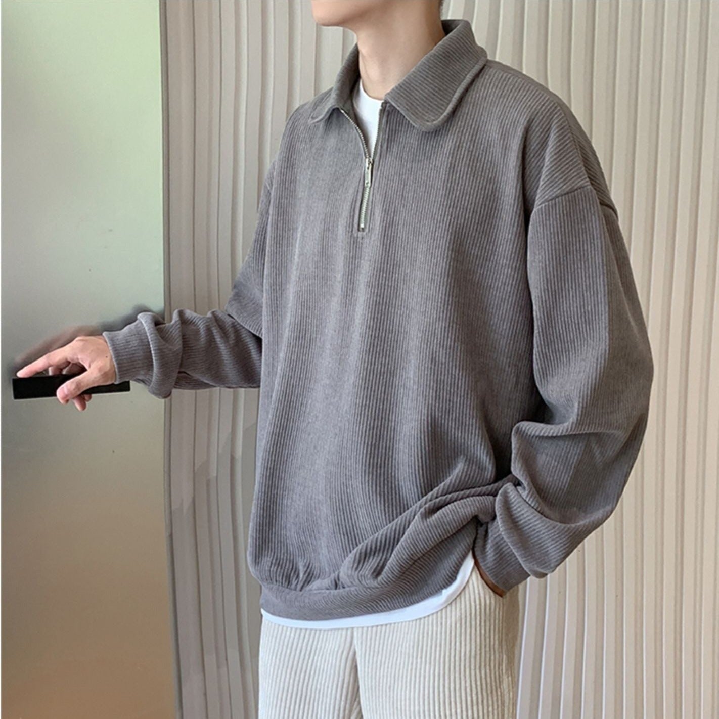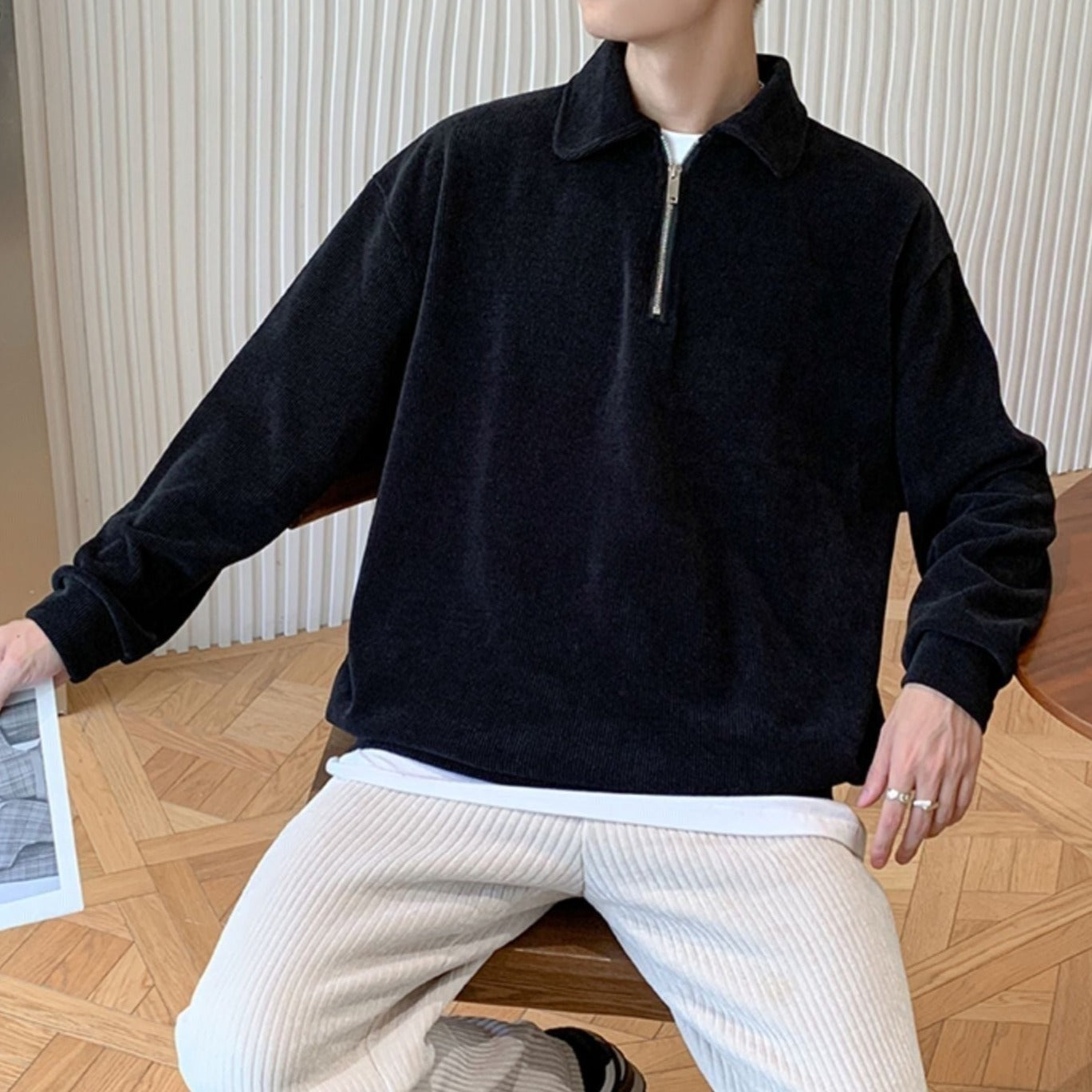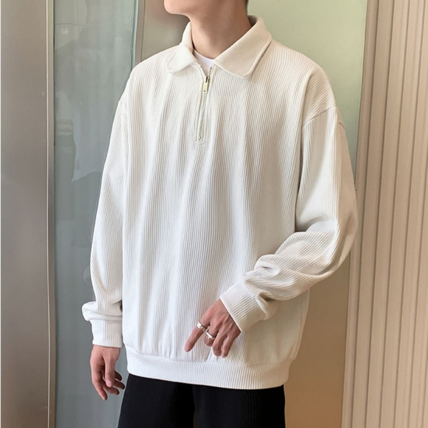 This half-zip top is perfect for those who want a neat Korean look.
