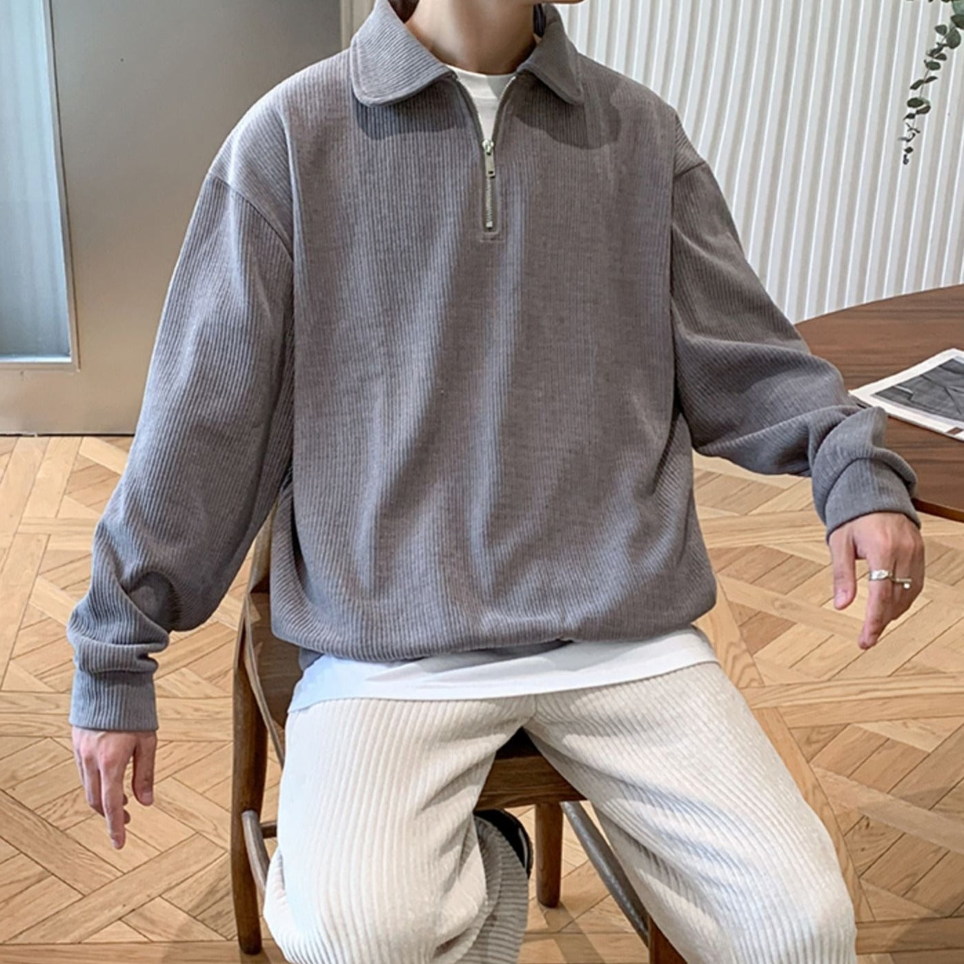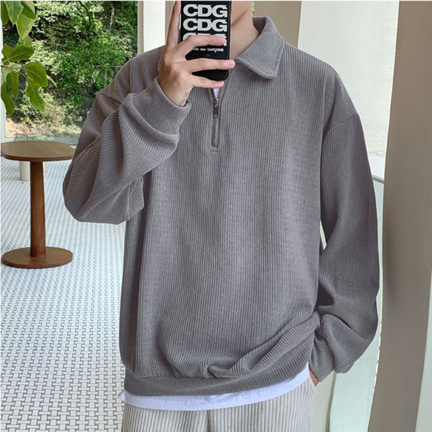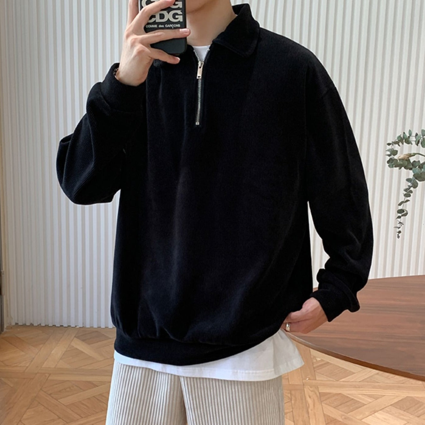 This half-zip top is perfect for those who want a neat Korean look.