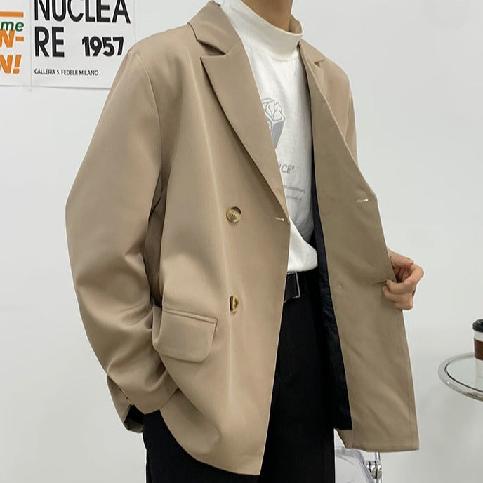 A tailored jacket that completes a sophisticated Korean-style outfit.