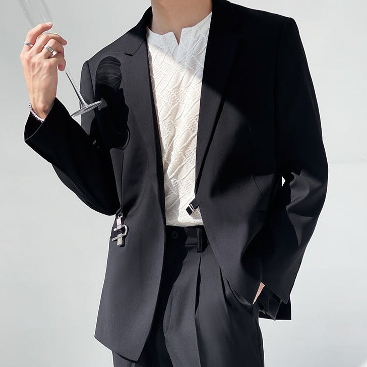 A stylish and fashionable jacket with a cool badge belt.