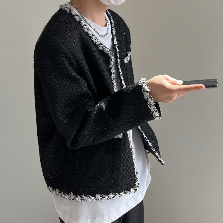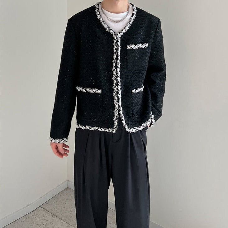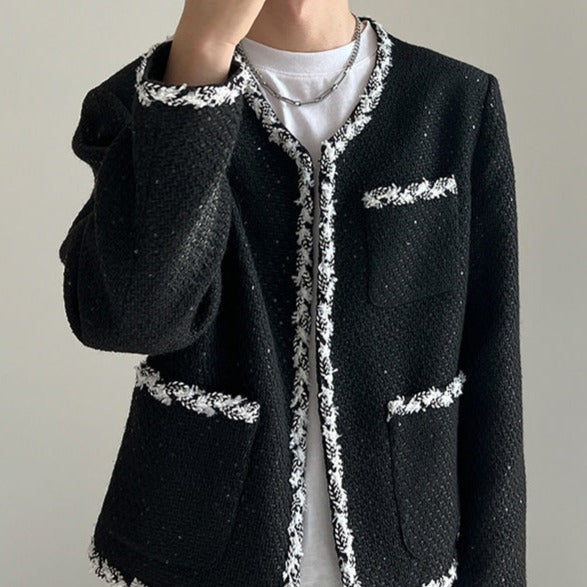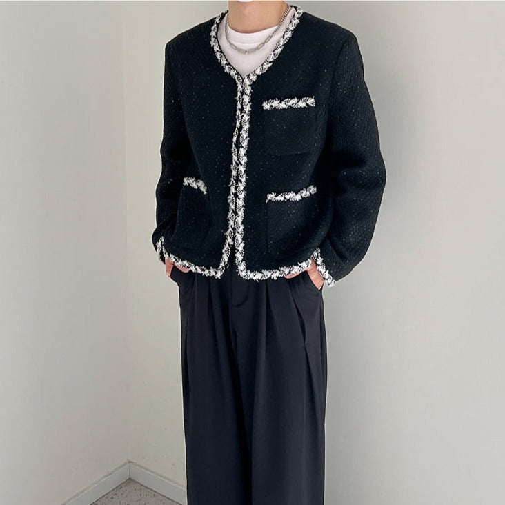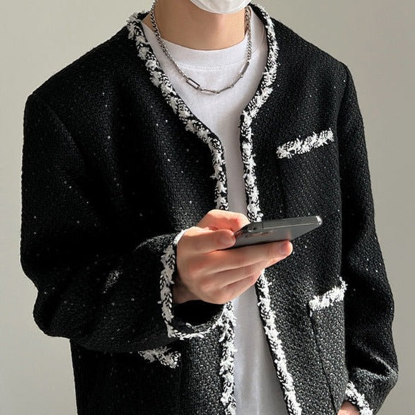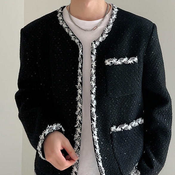A tweed jacket with a neat and modern design.