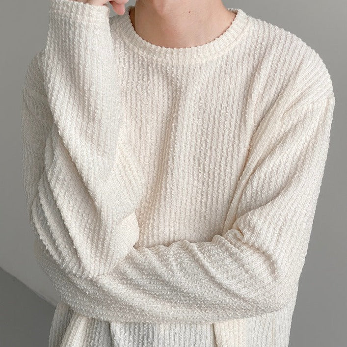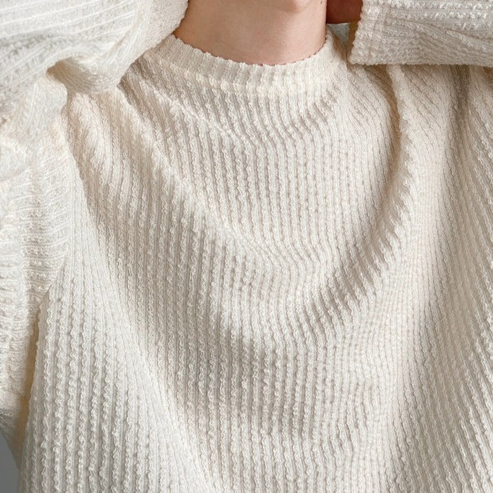 A designer knit designed with a striped shape.