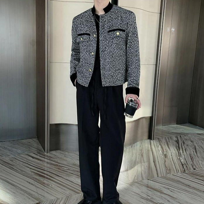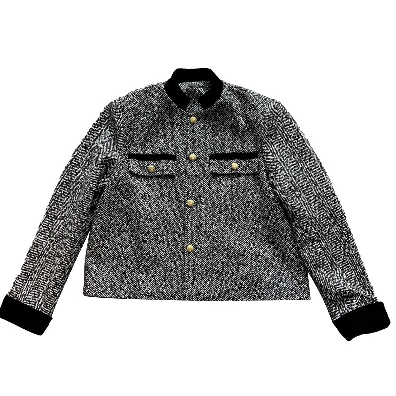 No-collar grey tweed jacket gm4336