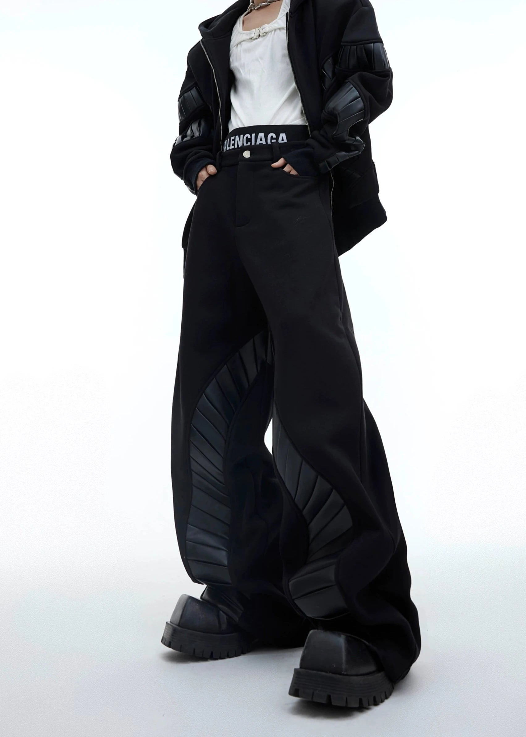 leather splicing plus velvet pants gm15988