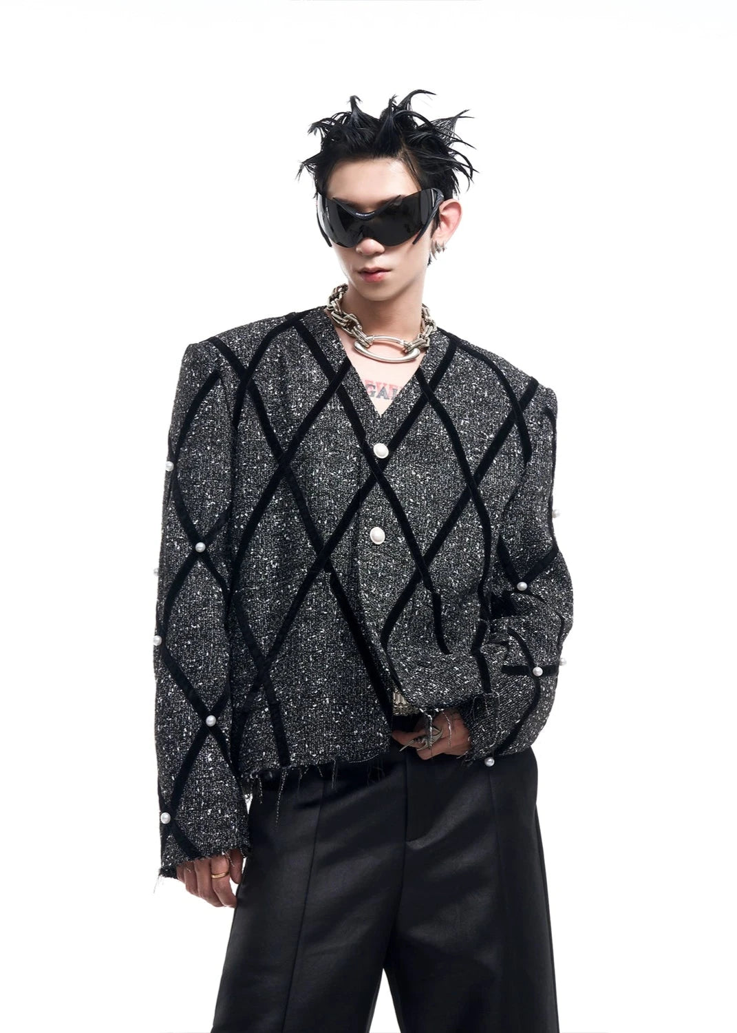 このジャケットは韓国のアイドル風で、韓国のキレイ系ファッションを楽しめます✨