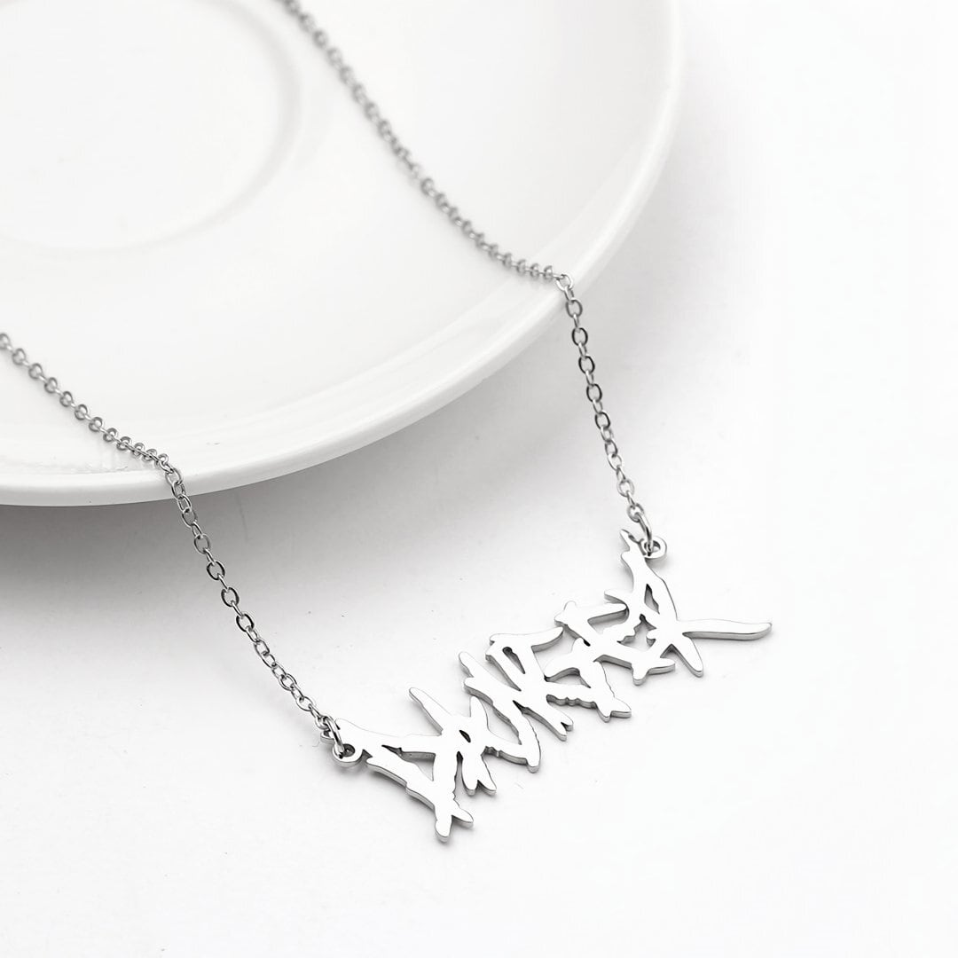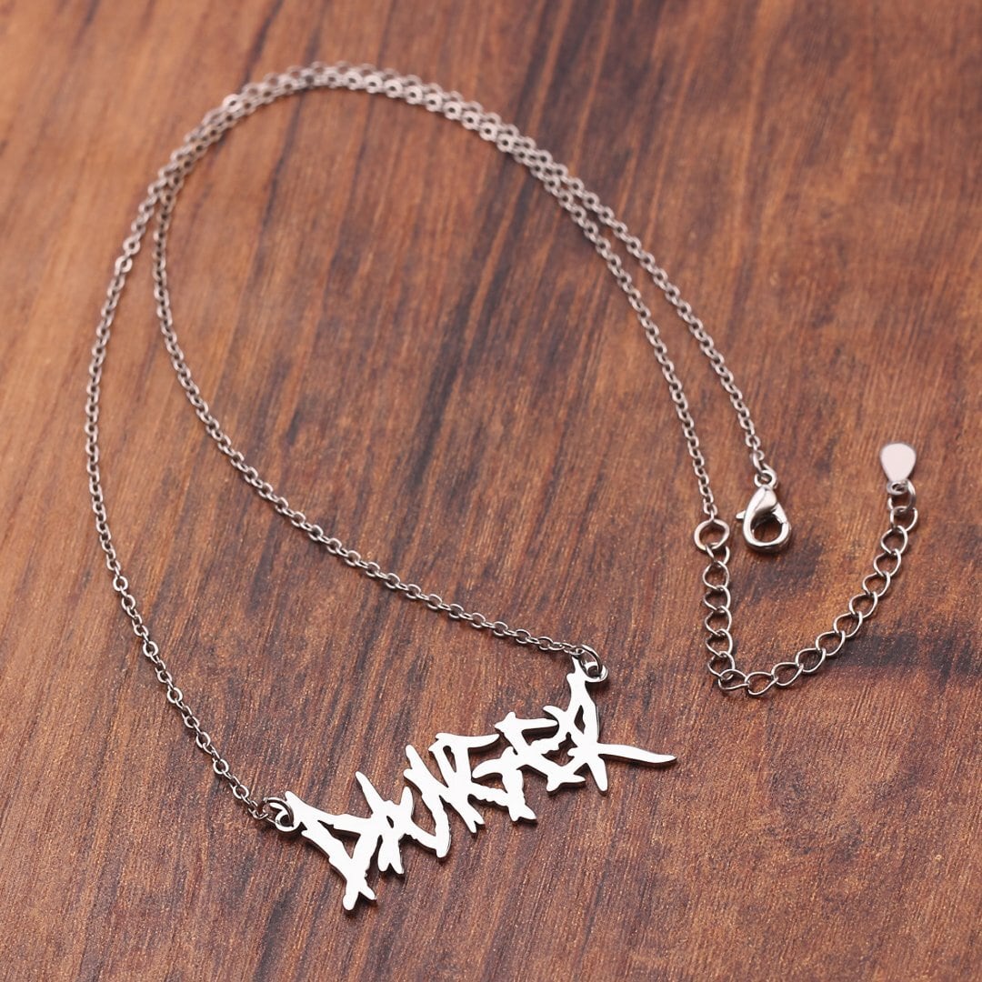 This stylish necklace features unique lettering and is a very popular item among Korean lovers.