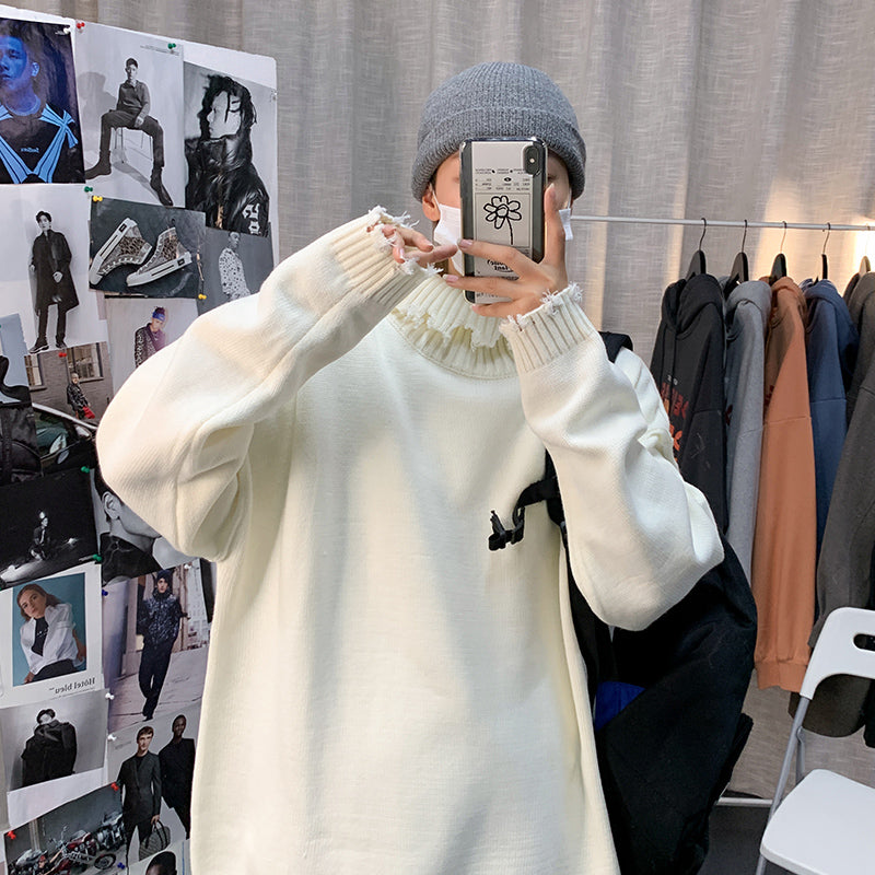 The loose-fitting look goes well with damaged pants. If you want to wear it as an accent to your outfit, try wearing it as an inner layer with a neat outfit such as a set-up for a cool look.