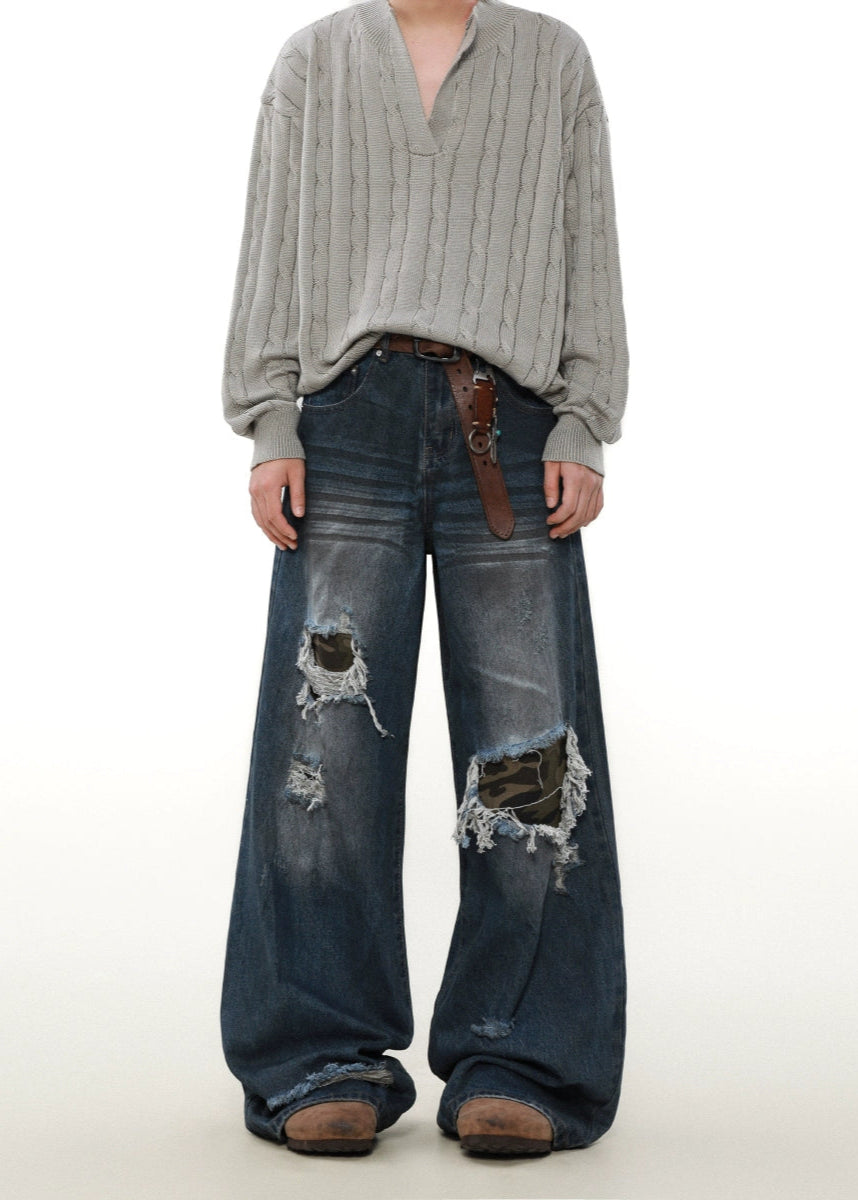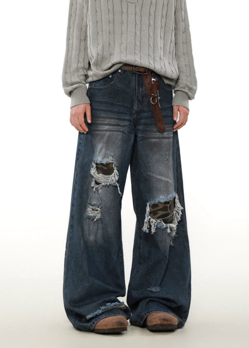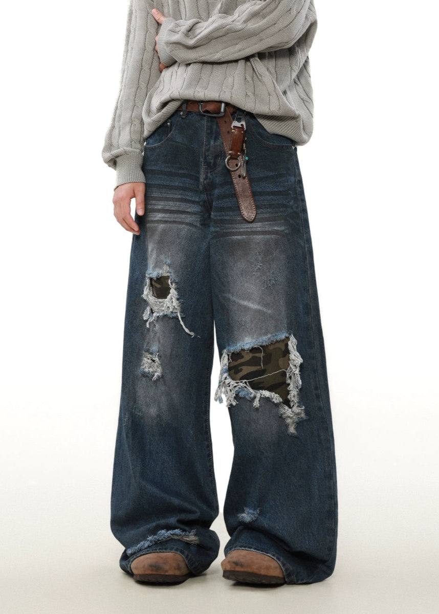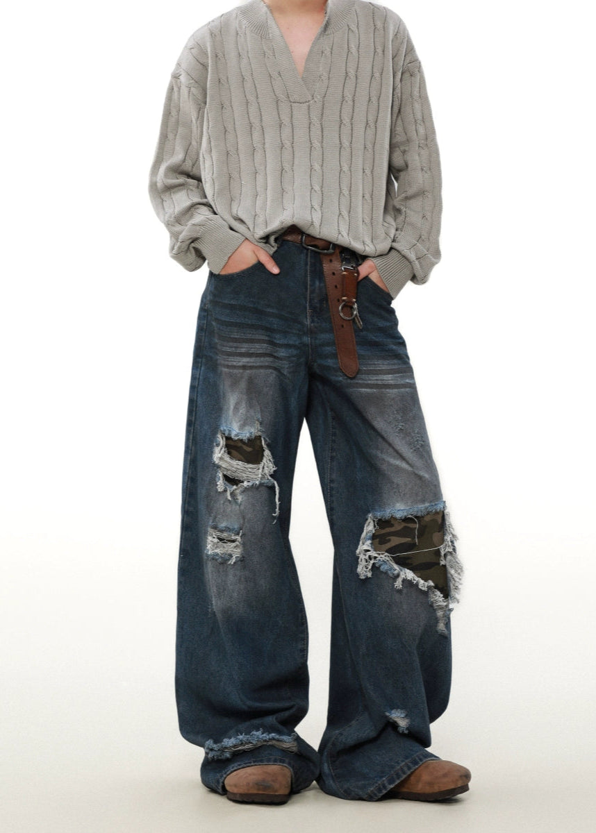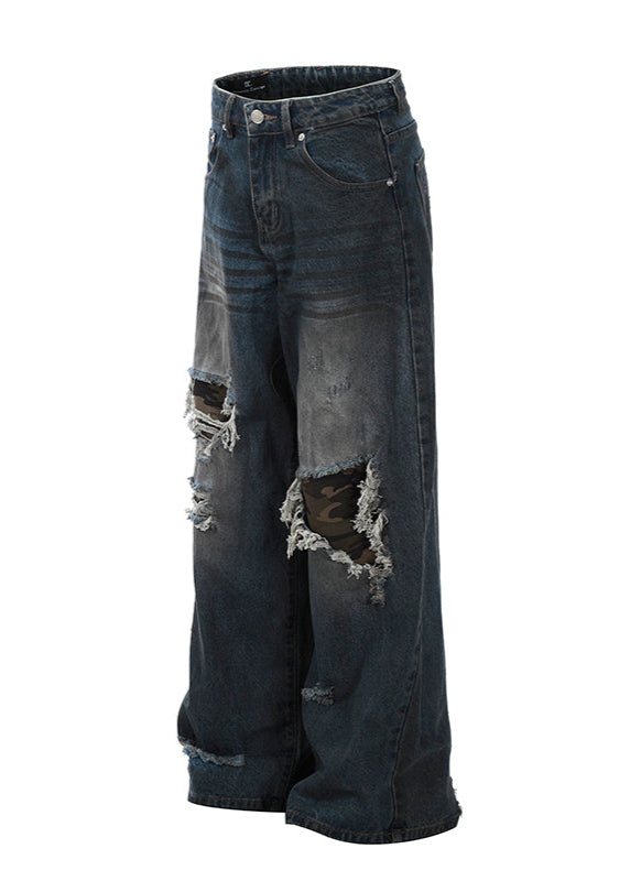 street patched hole camouflage denim gm16358