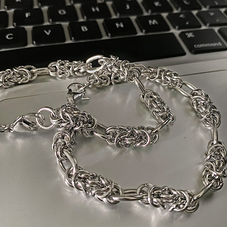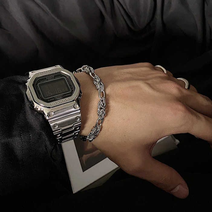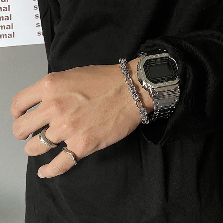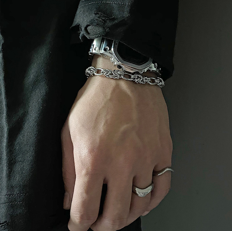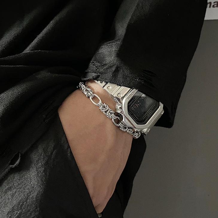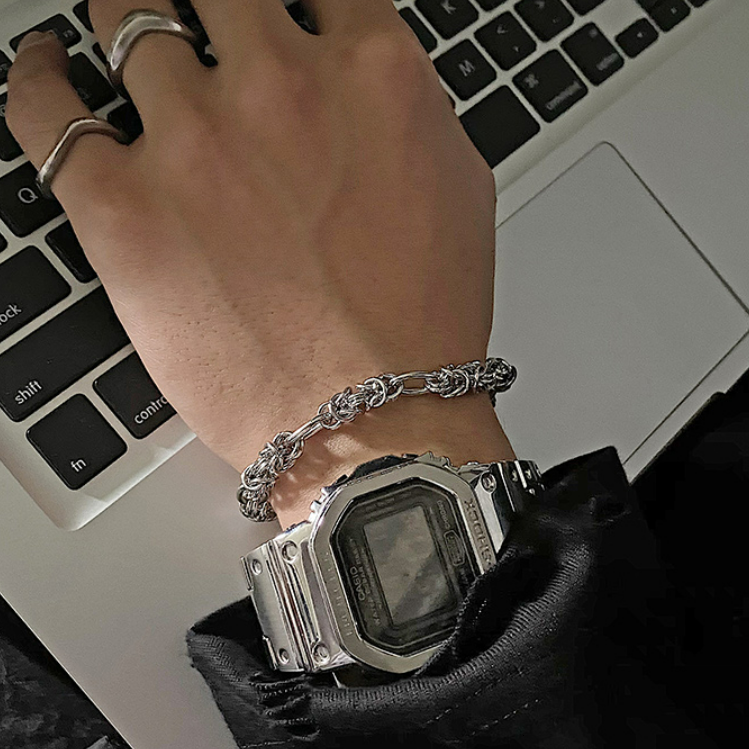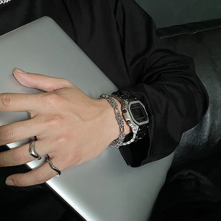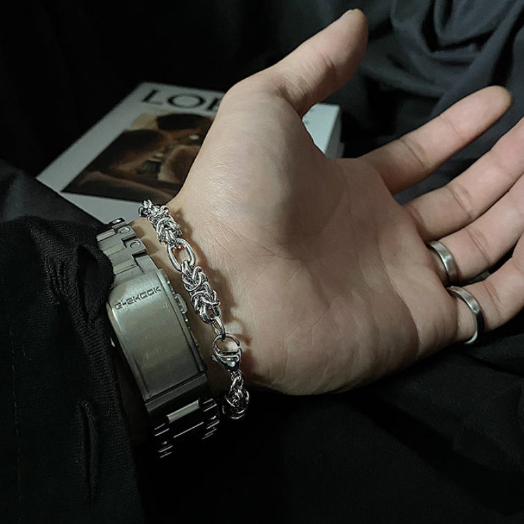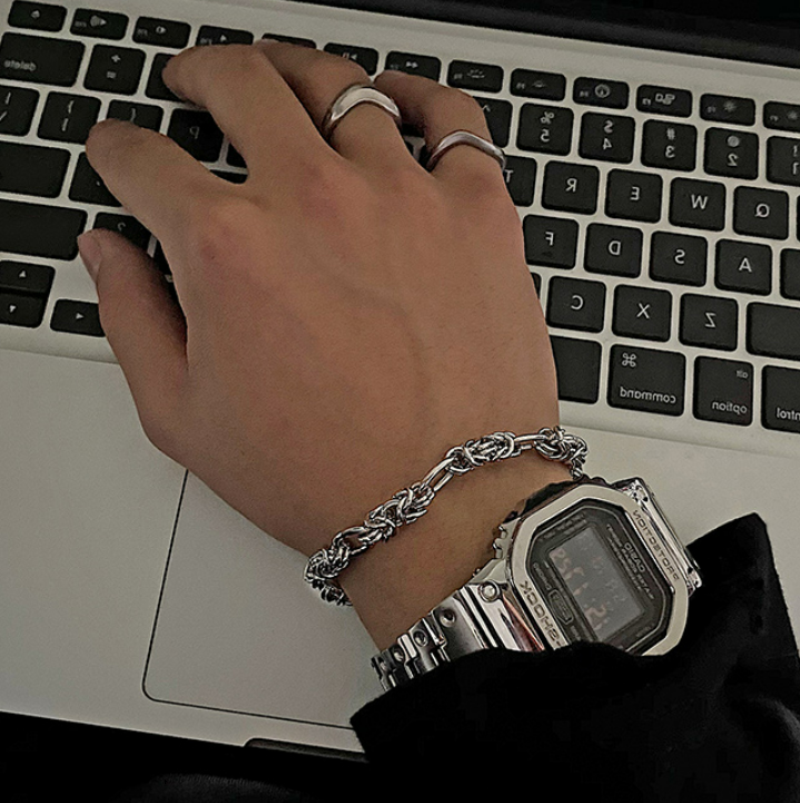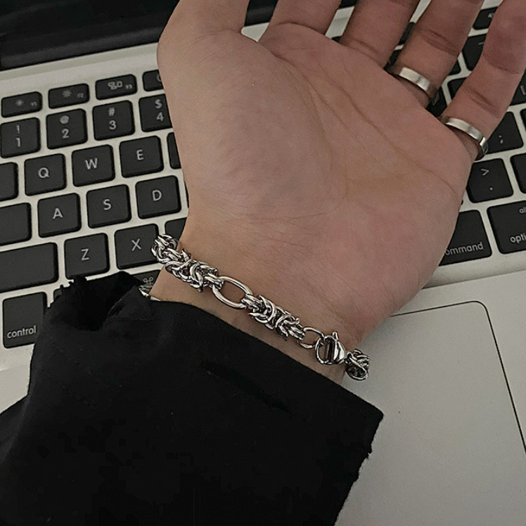 A stylish Korean-style silver bracelet with a retro feel thanks to the silver chain.