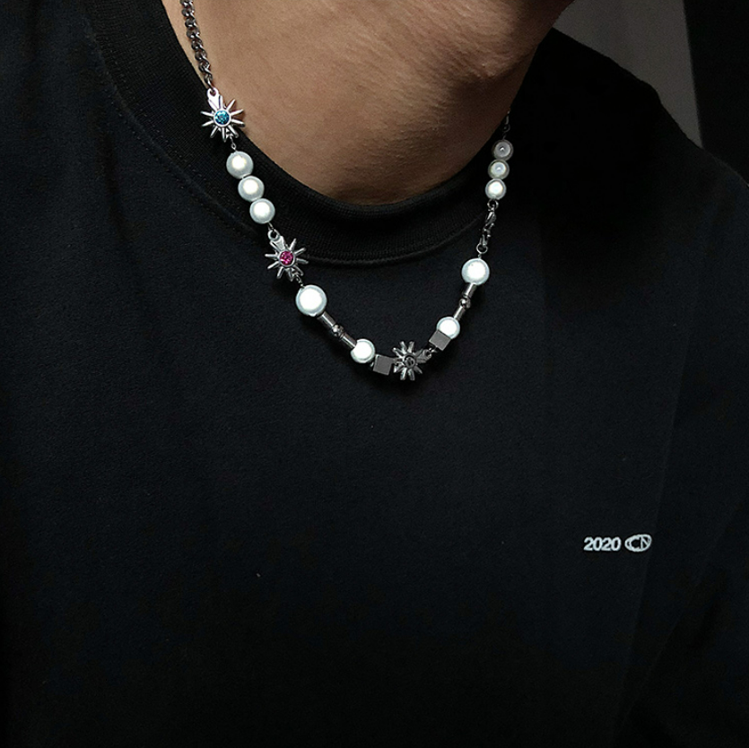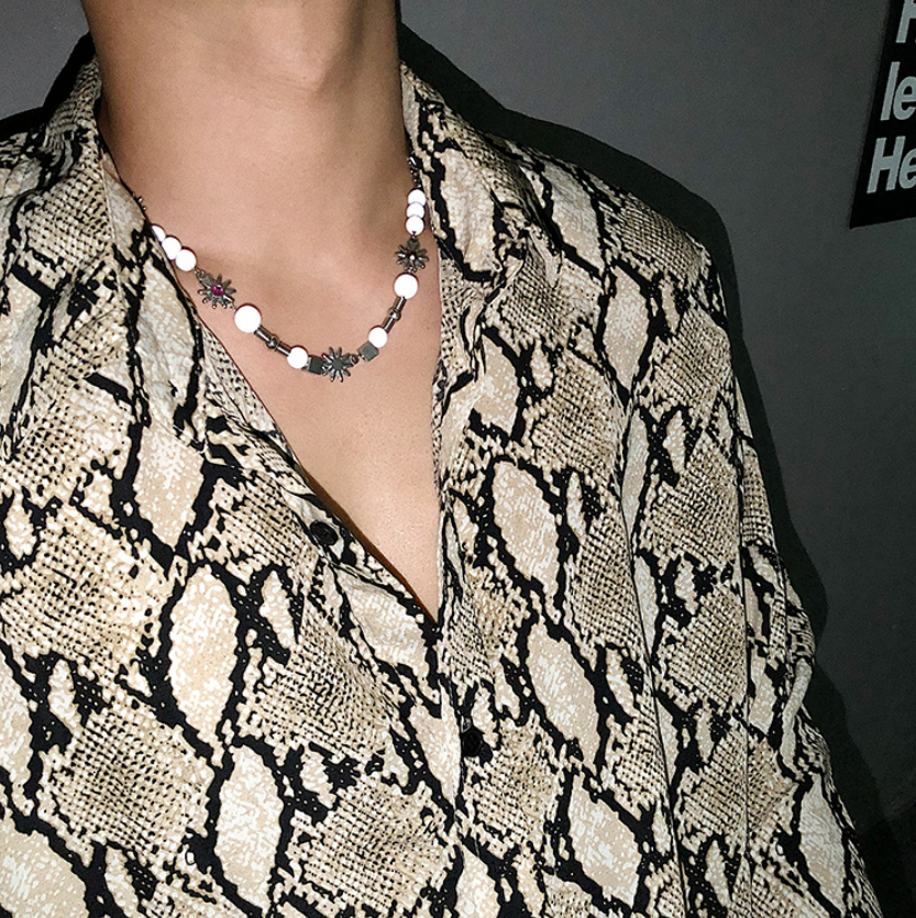 This is a Korean-style necklace that Korean idols also wear as part of their live performance costumes.