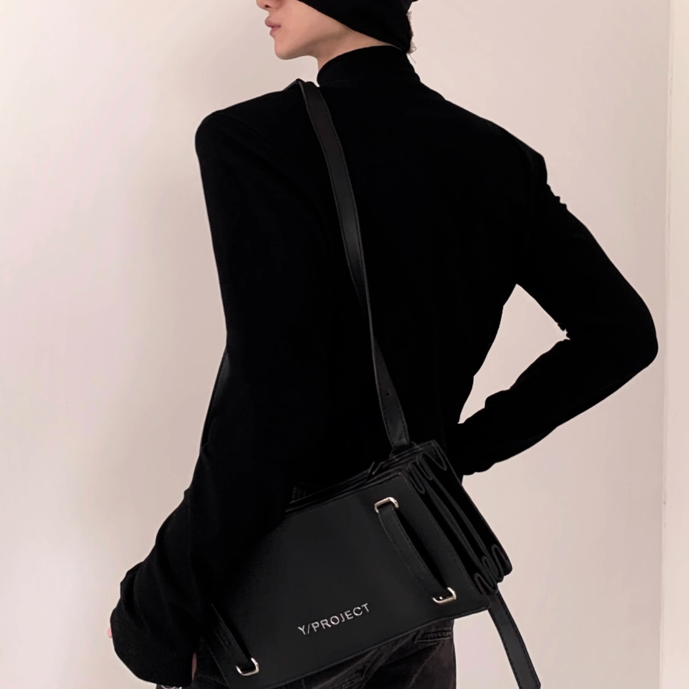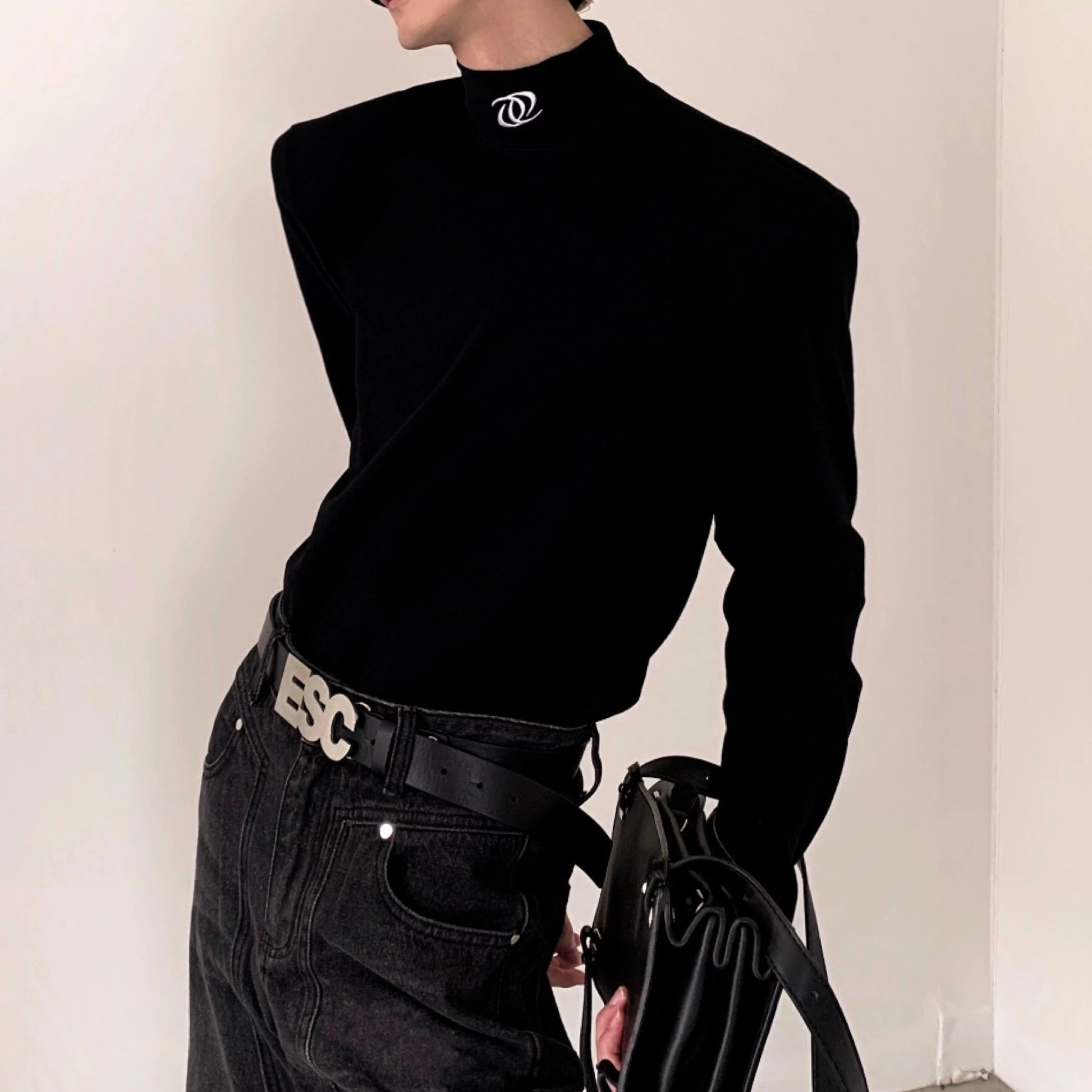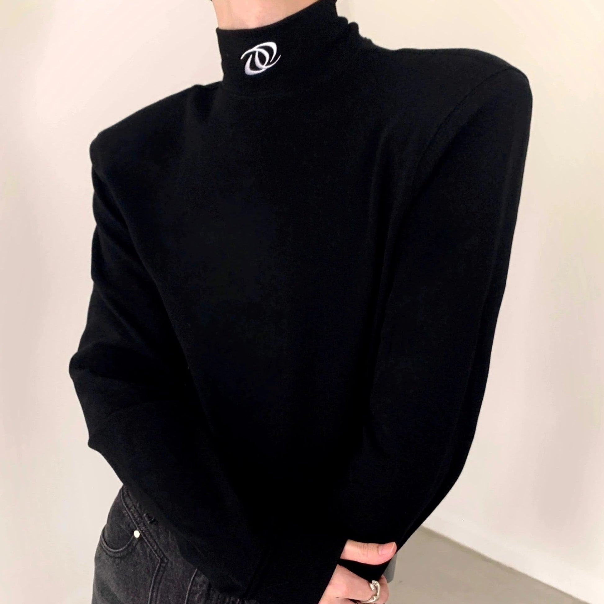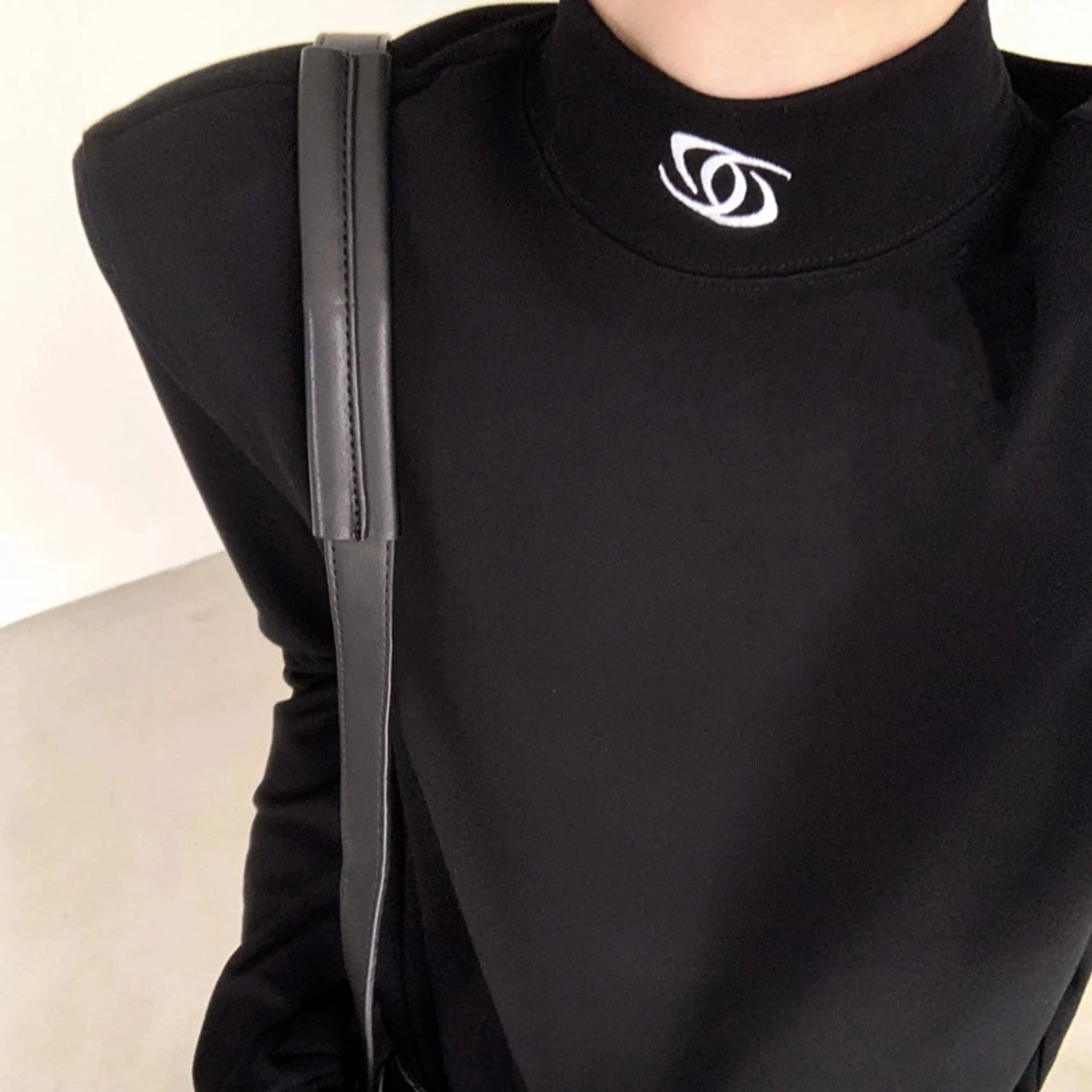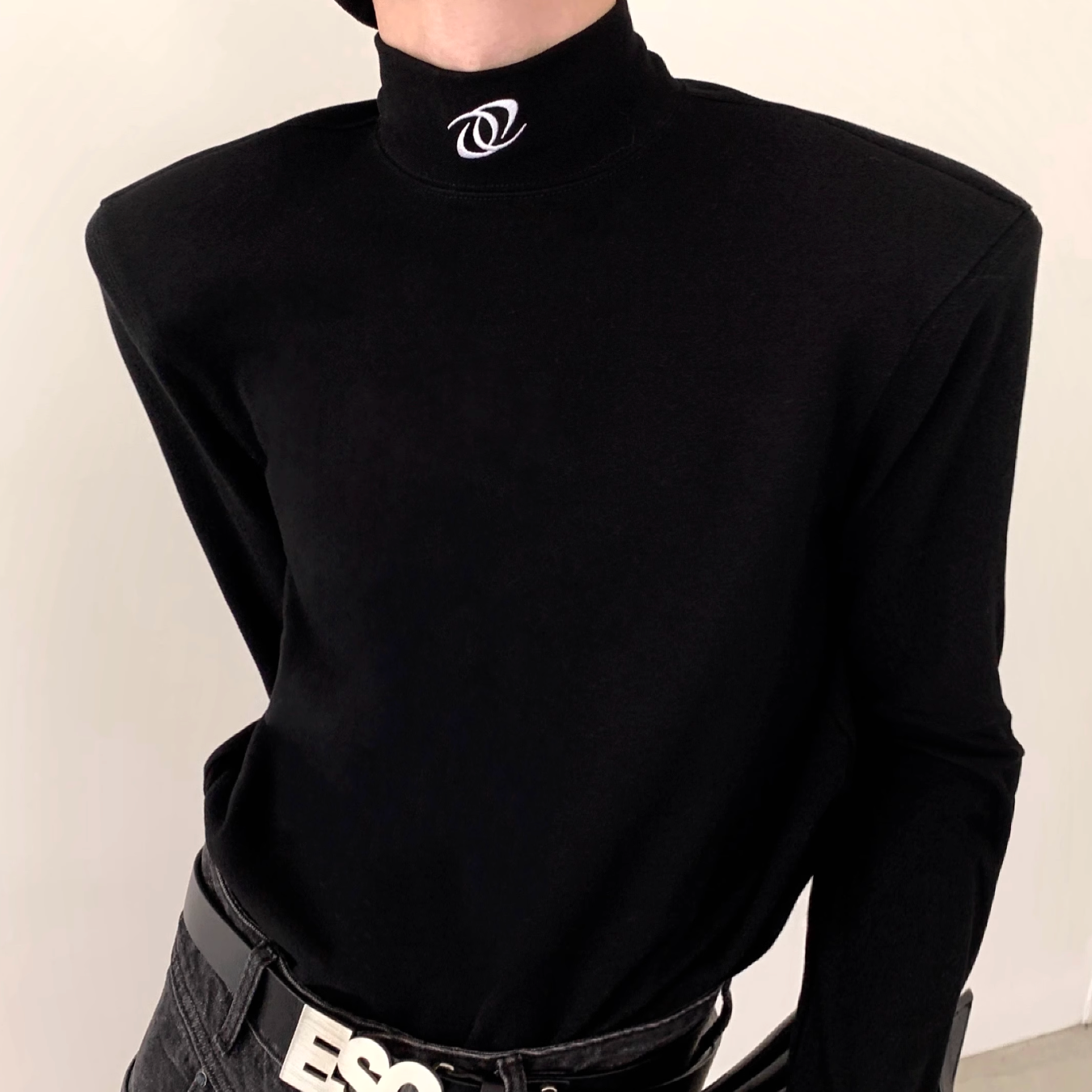 A stylish, tight-fitting turtleneck with a unique design around the neck