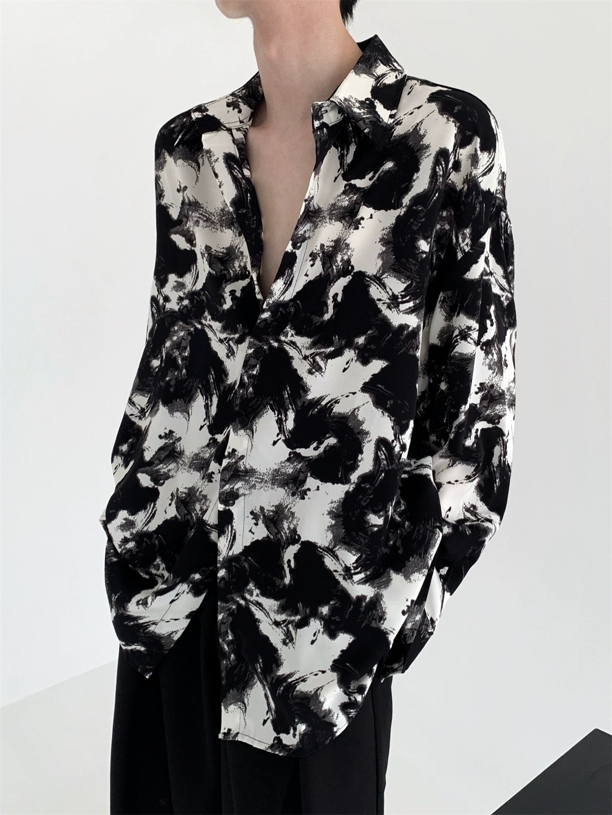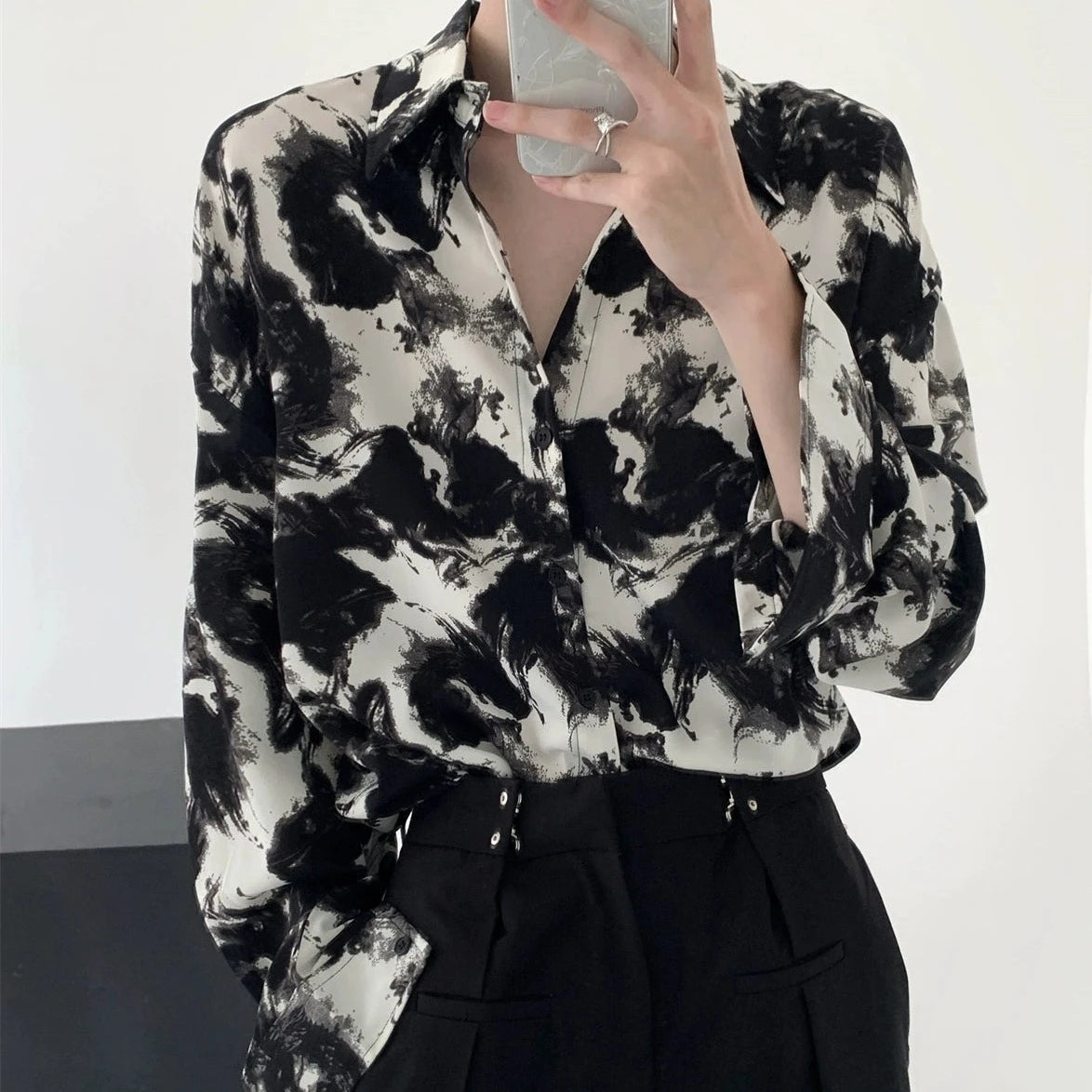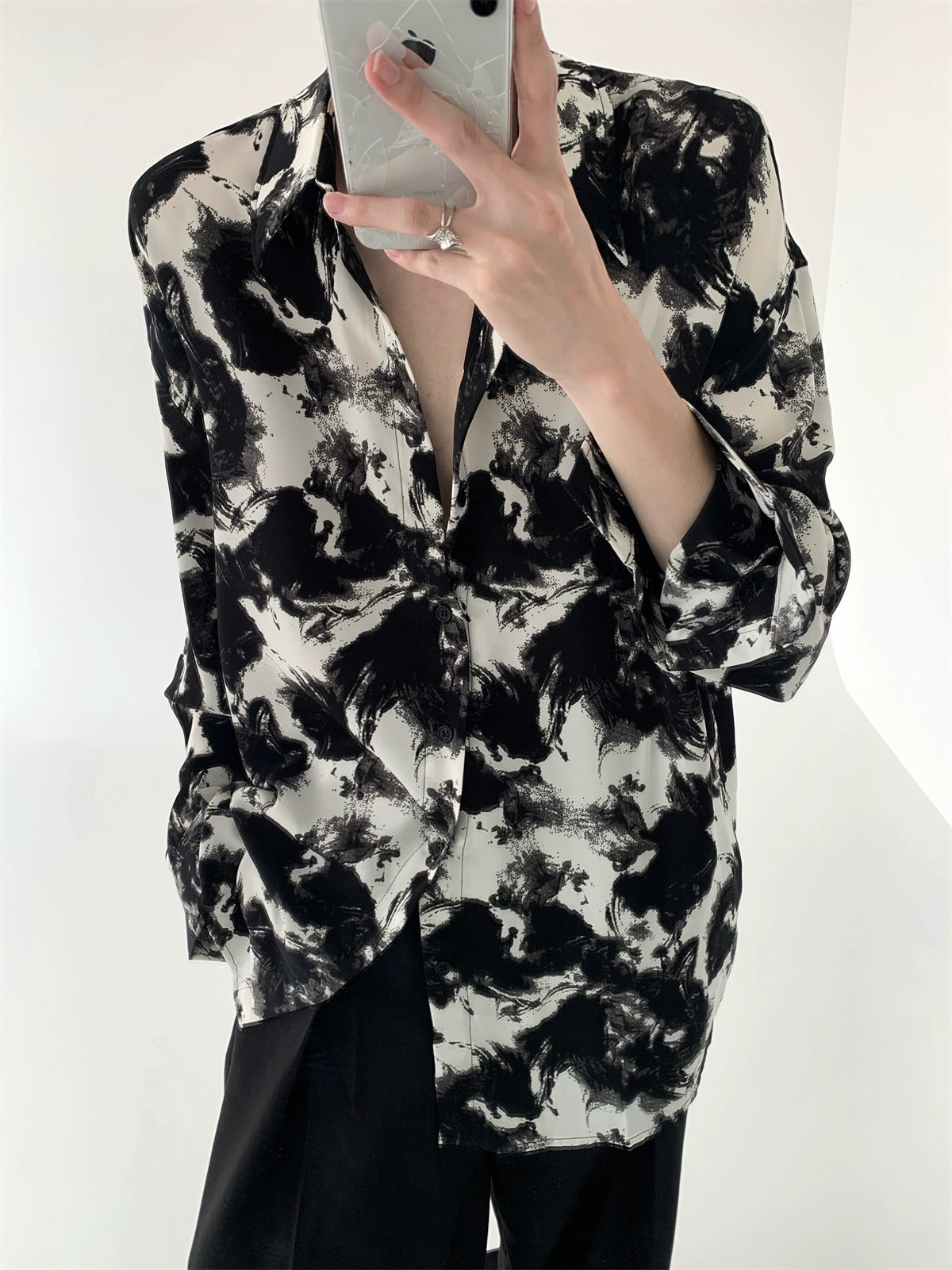 This patterned shirt is recommended for fans of modern Korean style! It's monotone so it's easy to match with other items. Pair it with black or white slacks for a neat and tidy look. It also goes well with fur items in the winter!