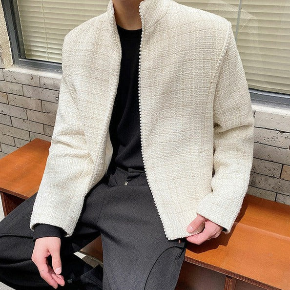 This jacket features a distinctive upturned collar and is recommended for those who want to create a fashionable look!