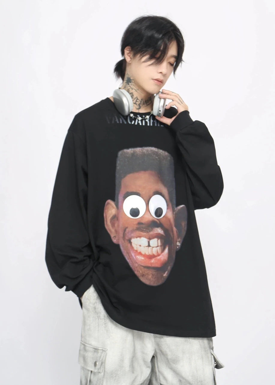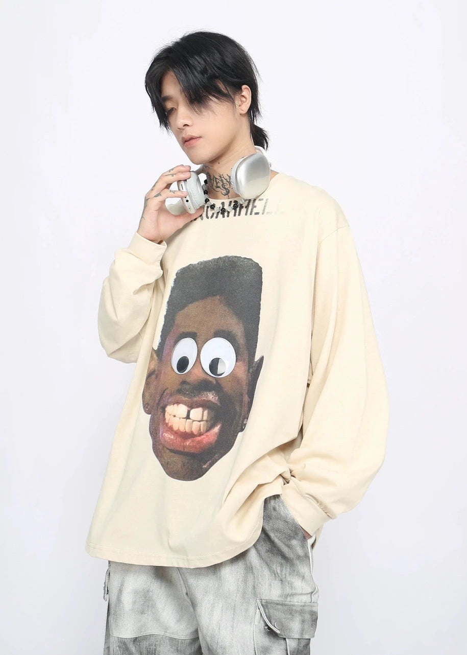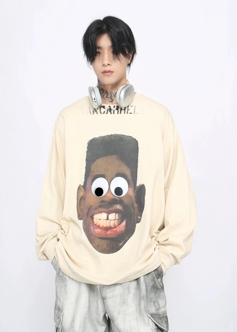 オシャレで遊び心溢れるカートゥーンプリントの長袖Tシャツ❣️