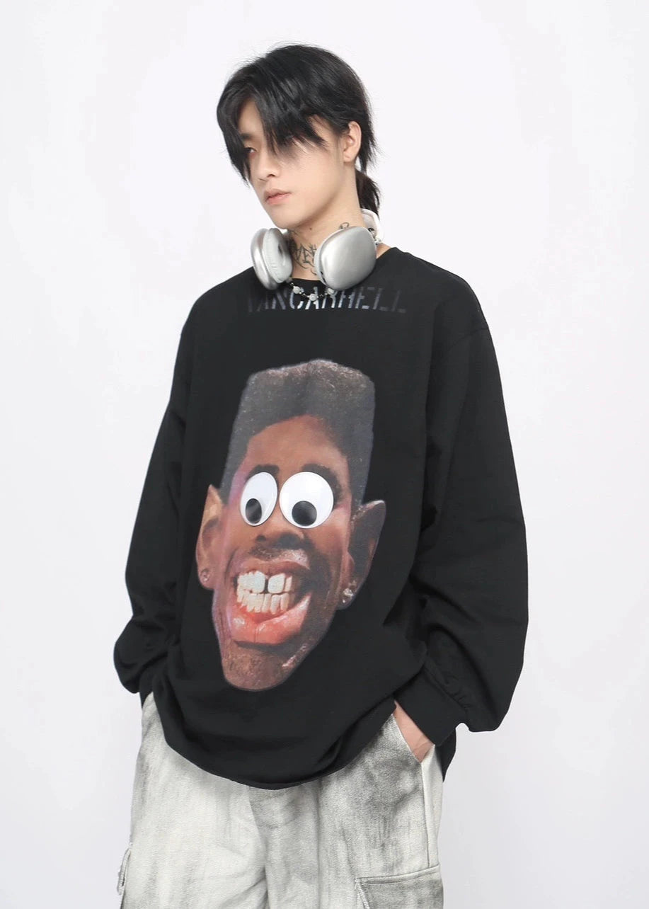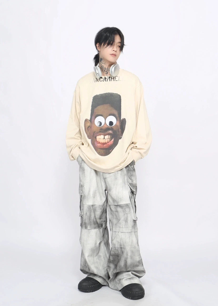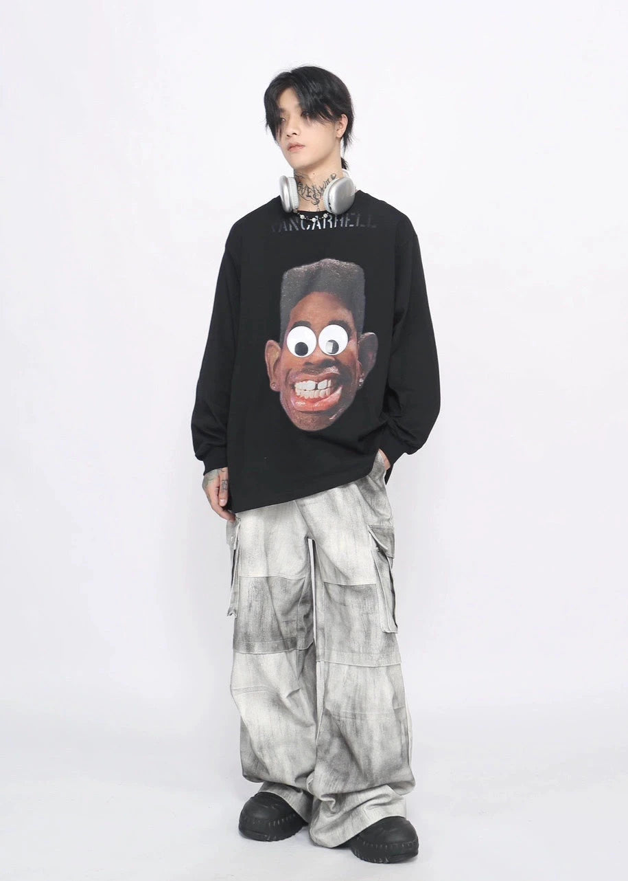 オシャレで遊び心溢れるカートゥーンプリントの長袖Tシャツ❣️