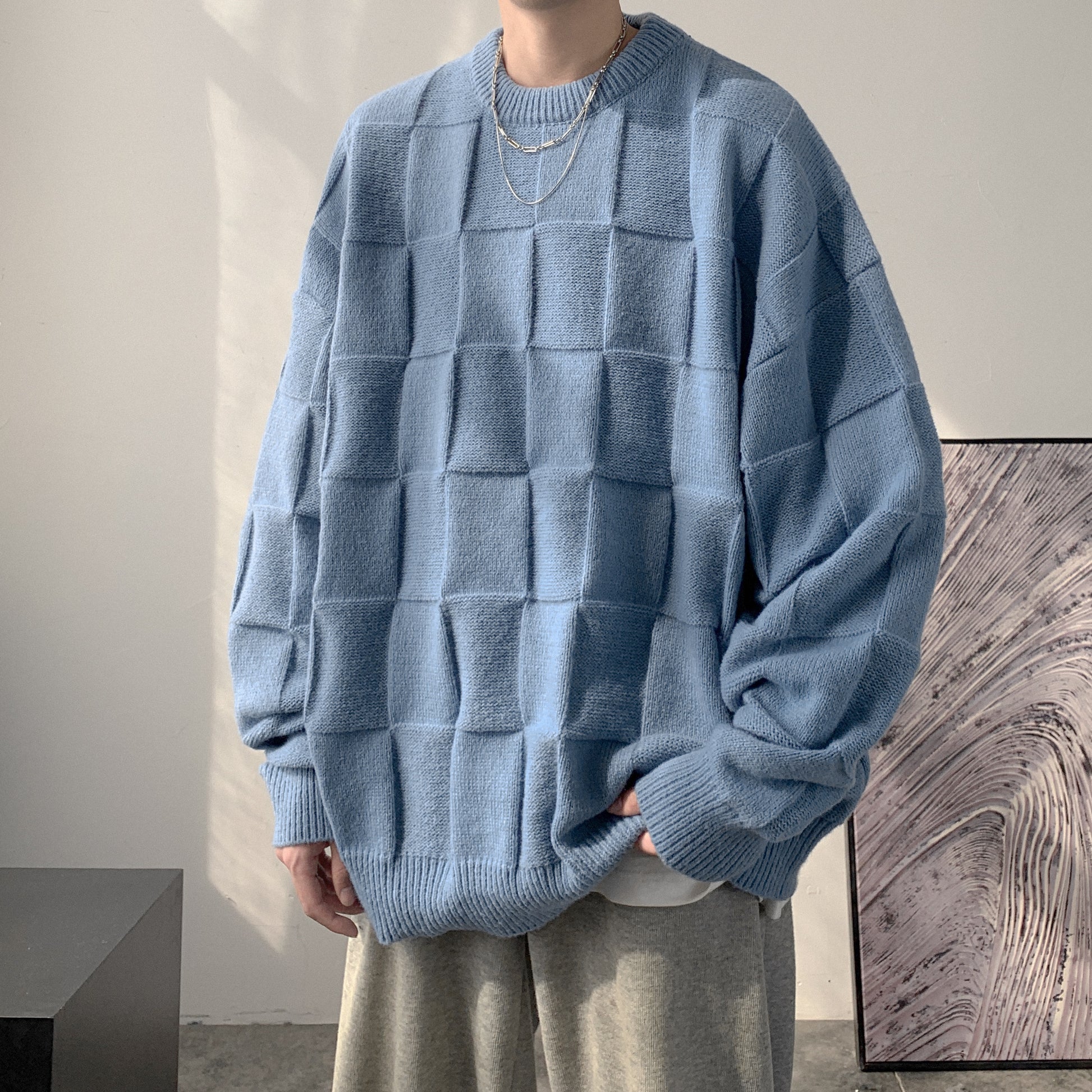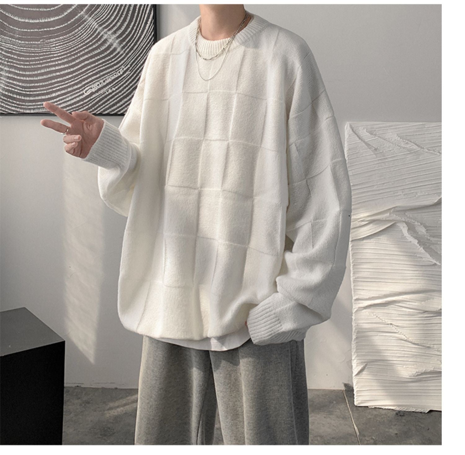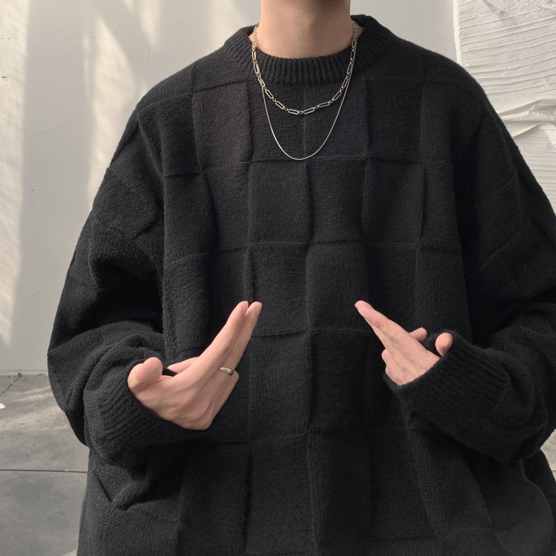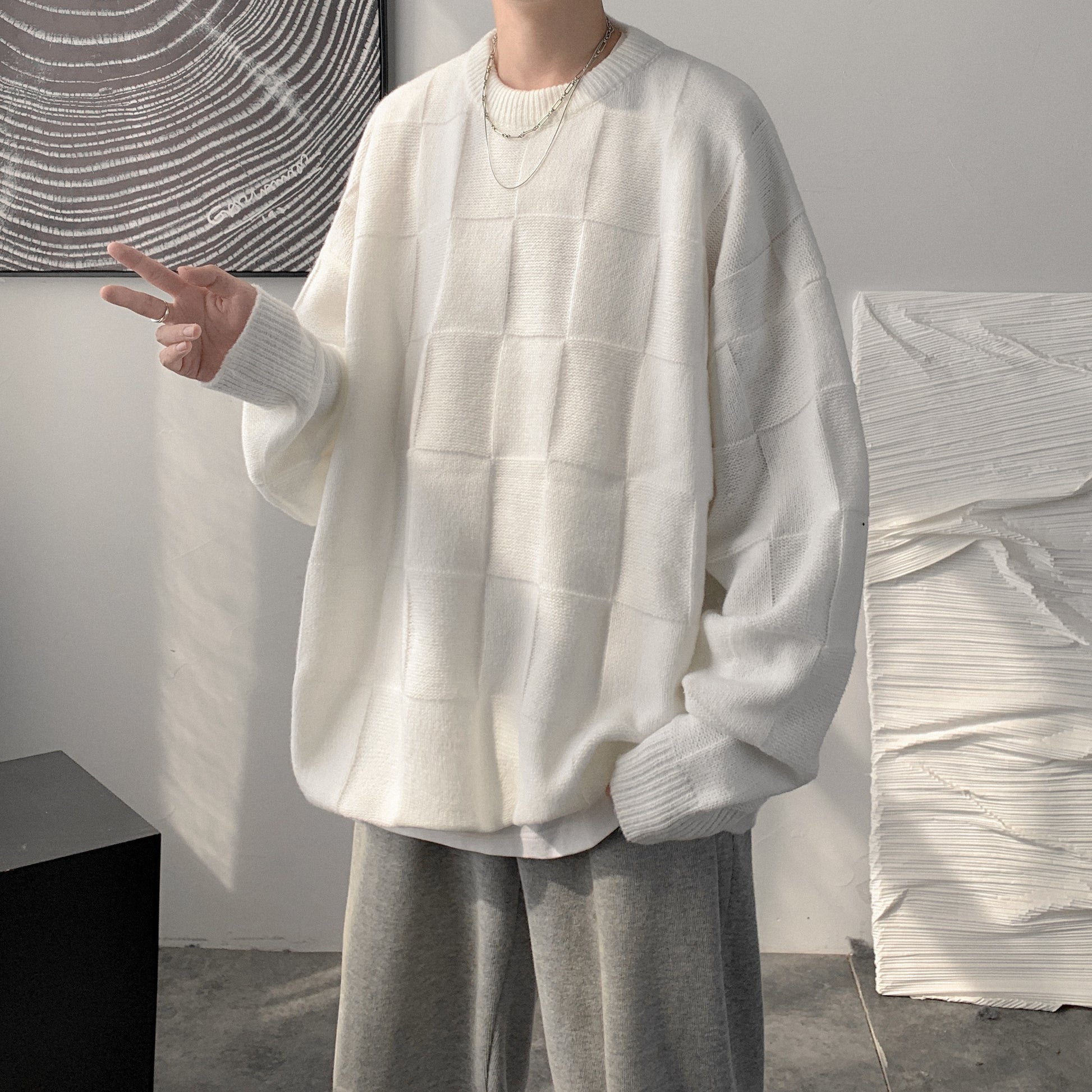 Checkered loose knit gm3084