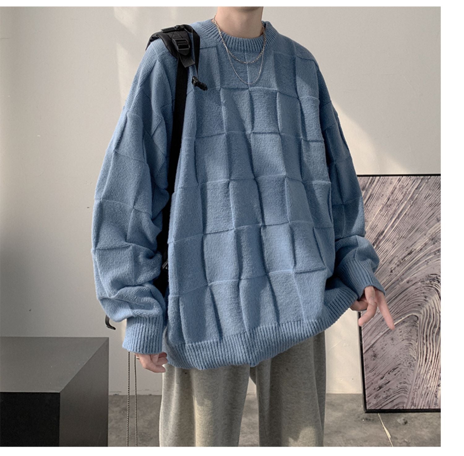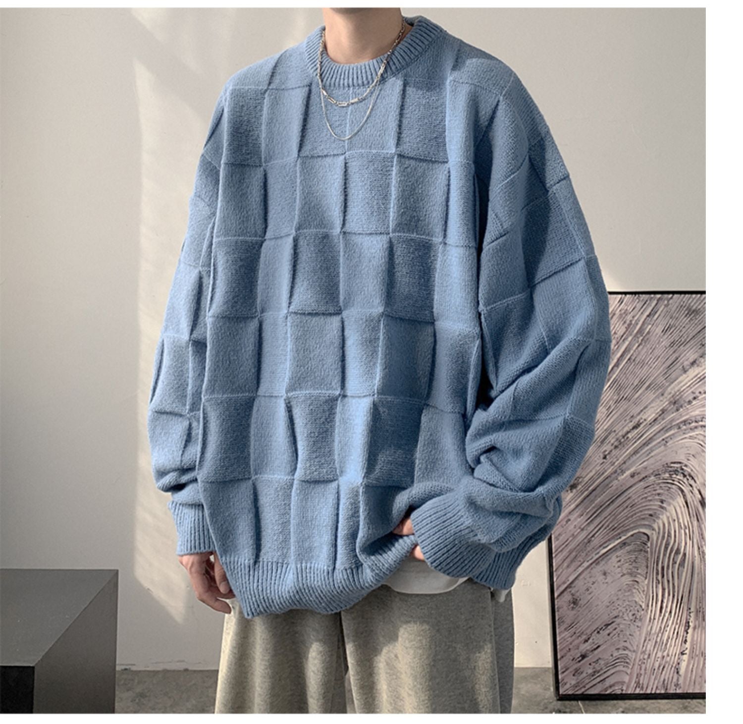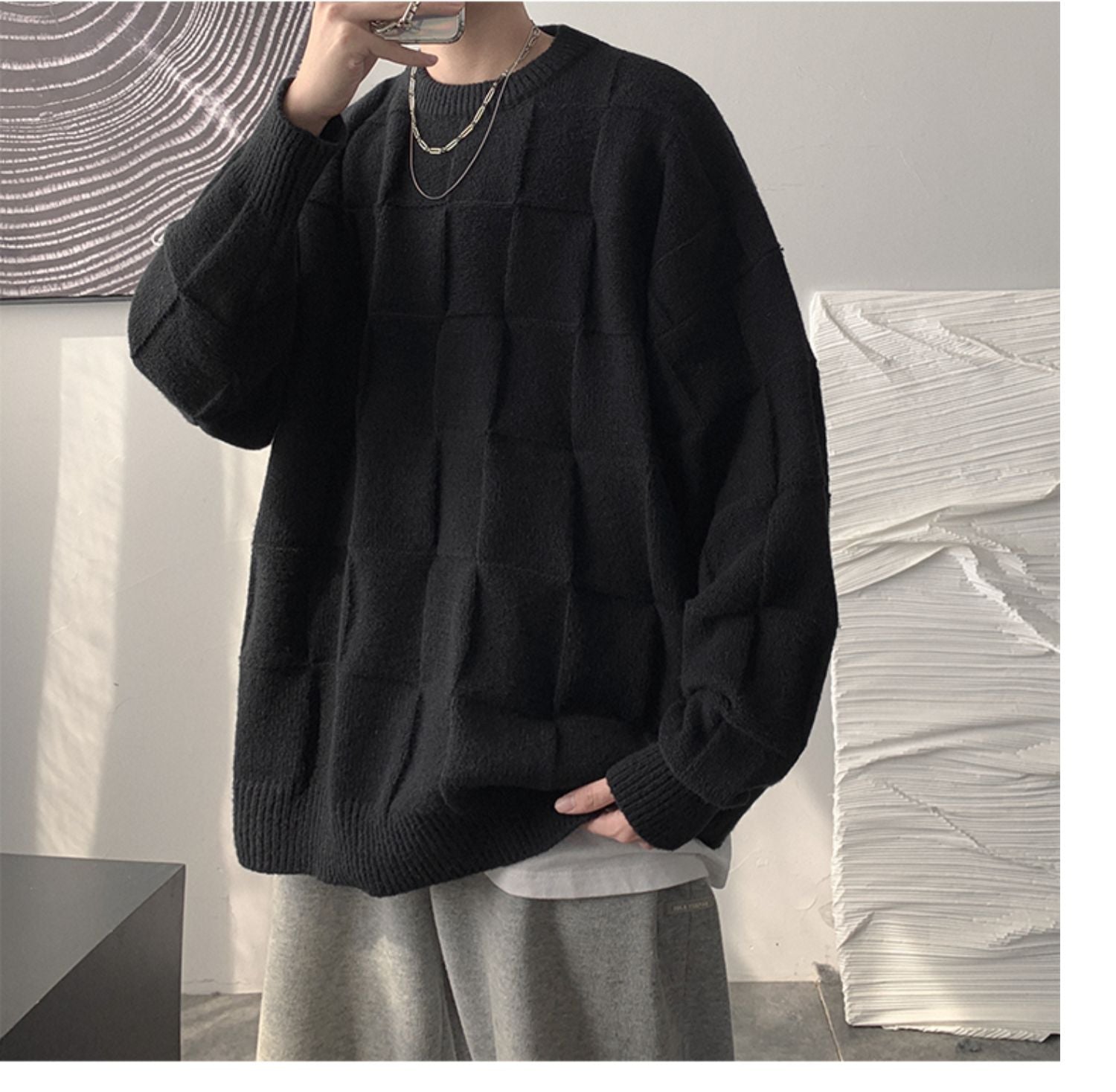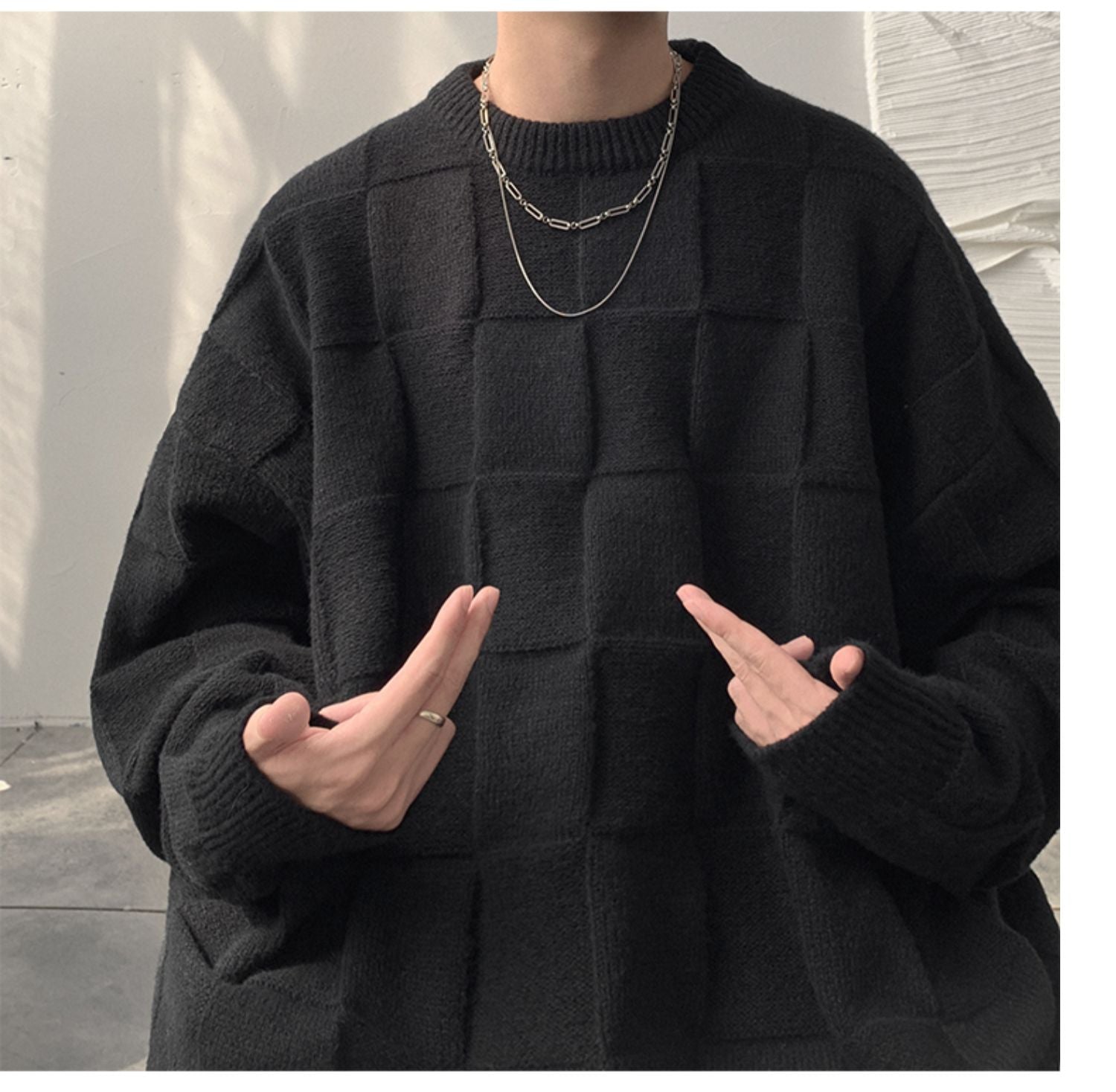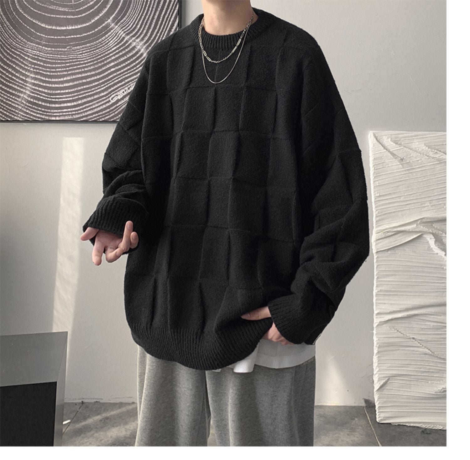Checkered loose knit gm3084