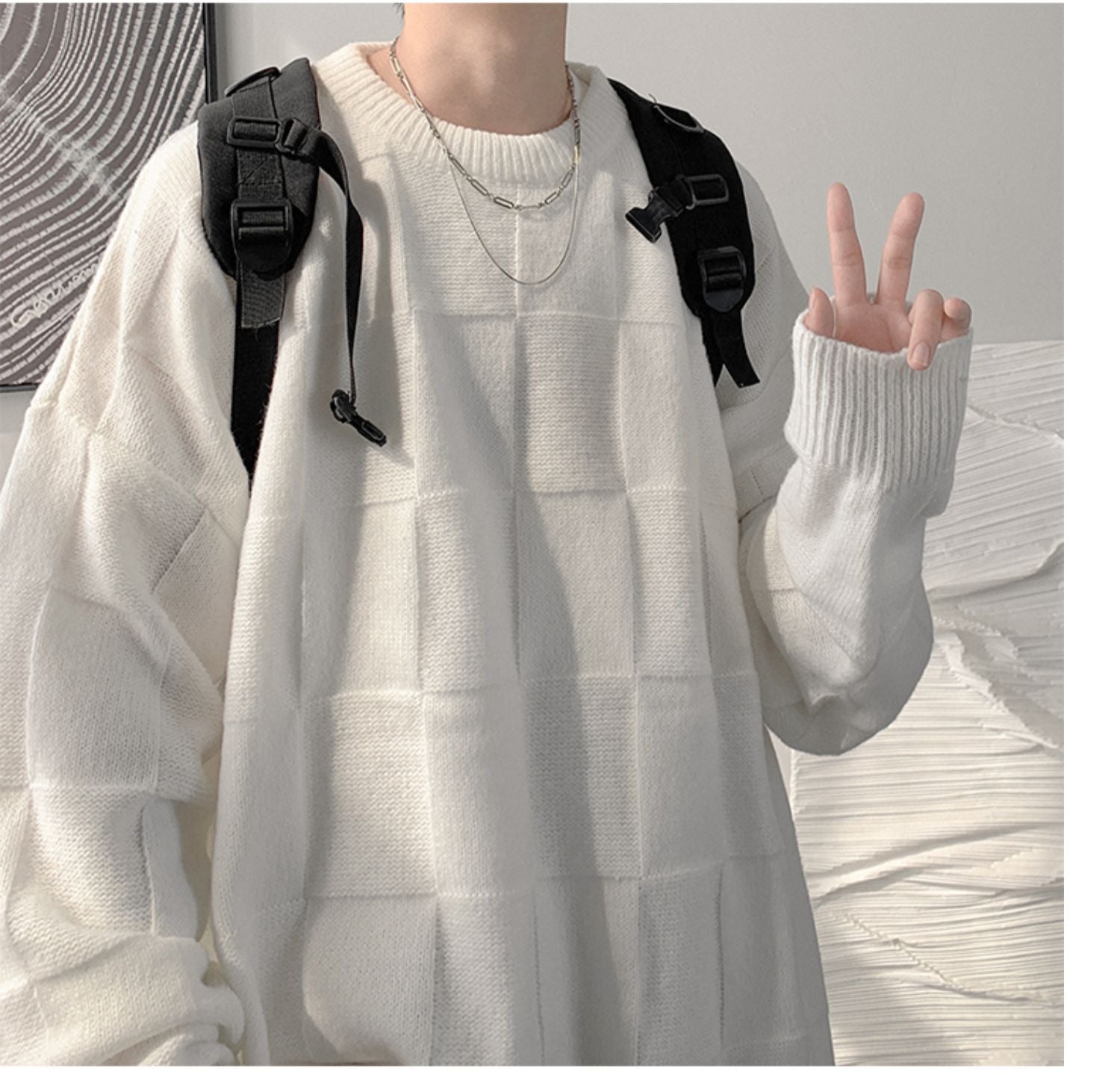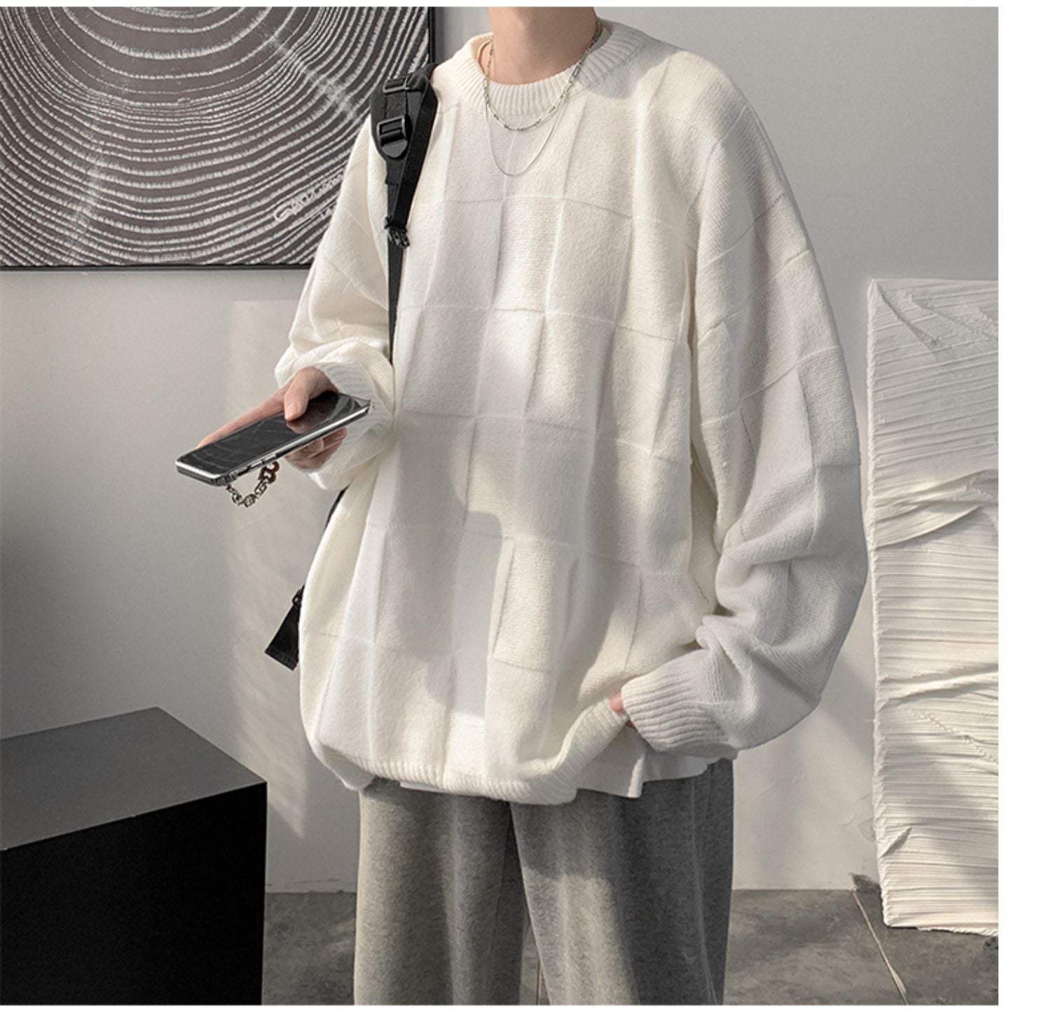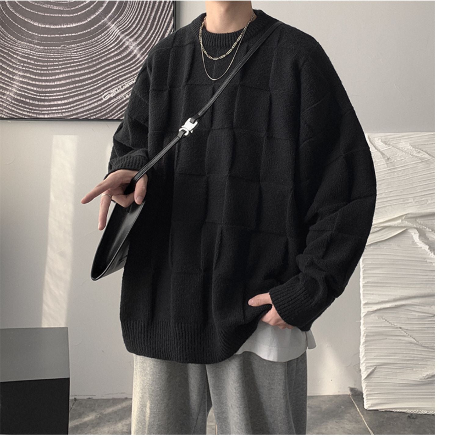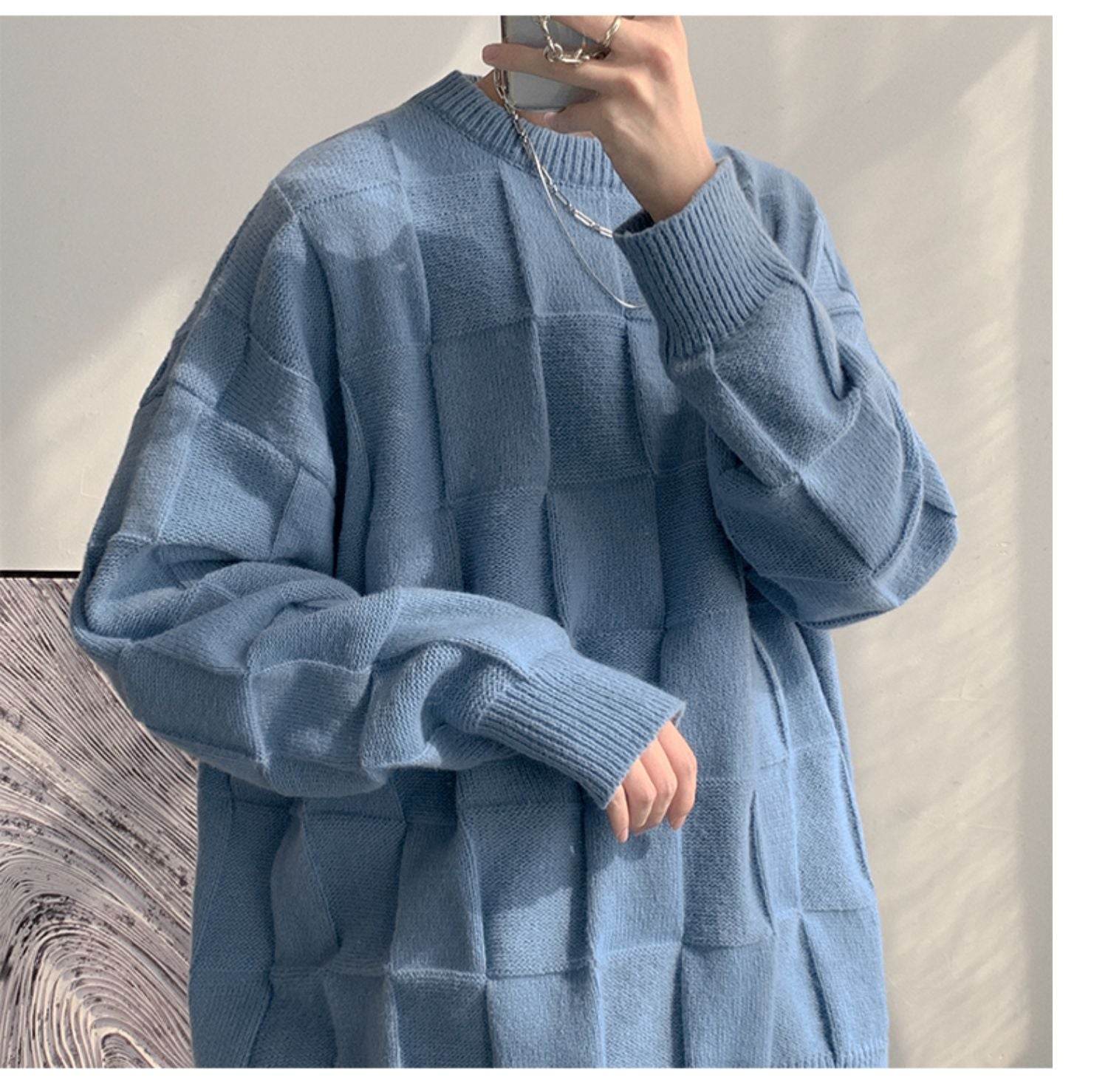 Checkered loose knit gm3084