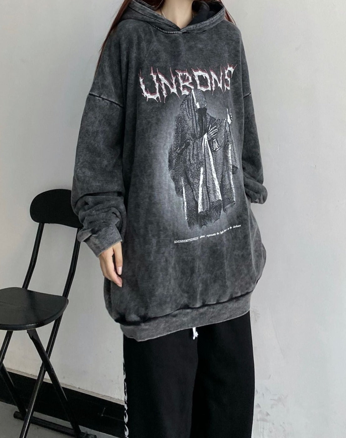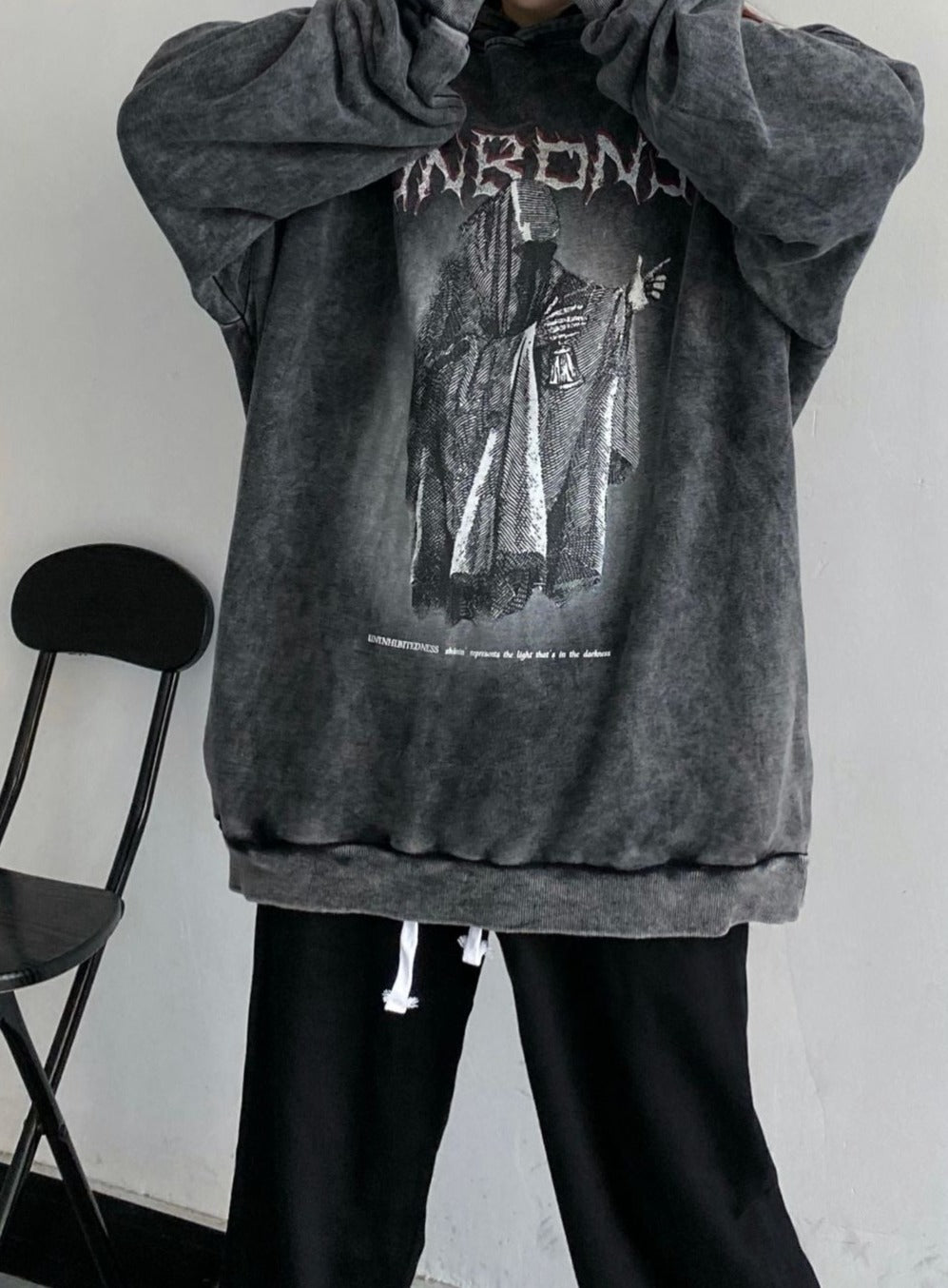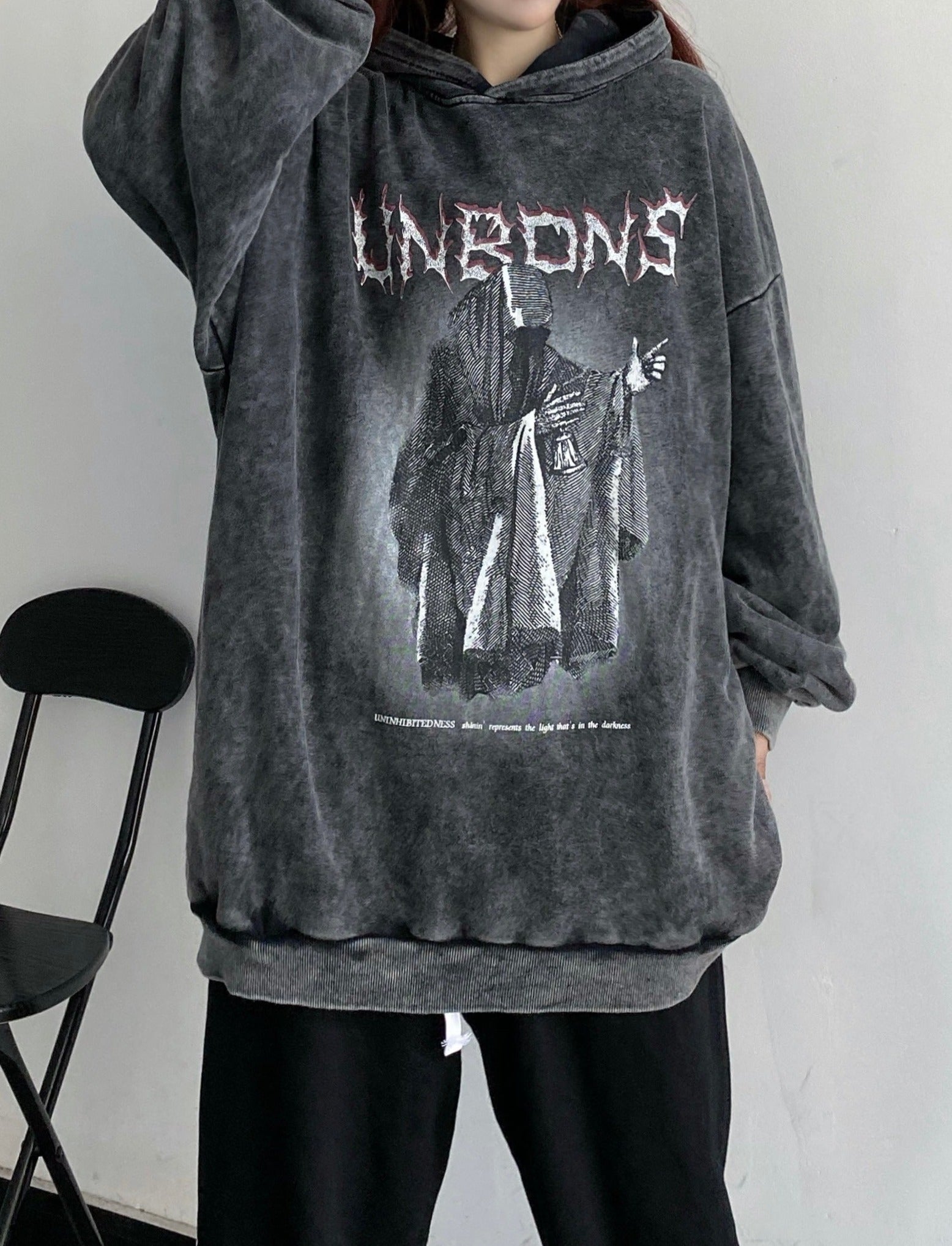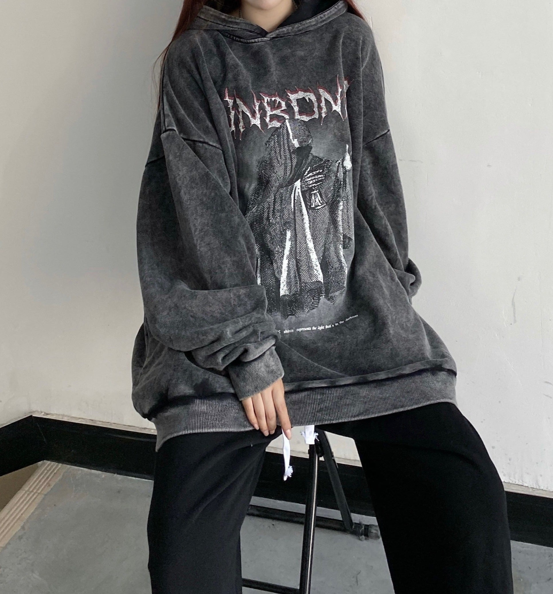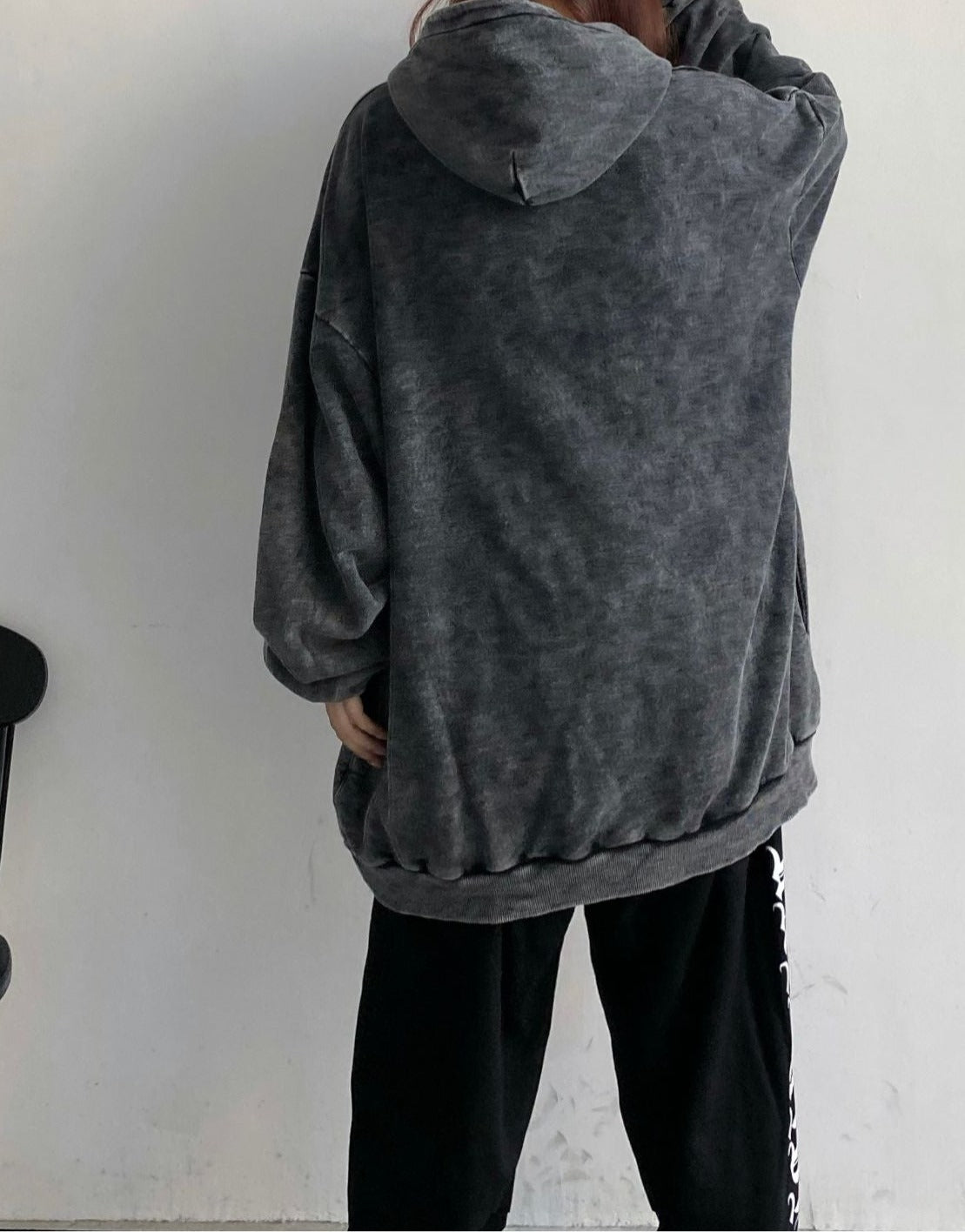 An oversized hoodie with a washed finish