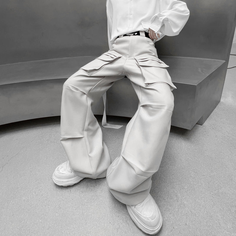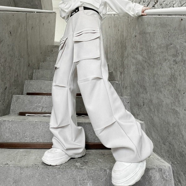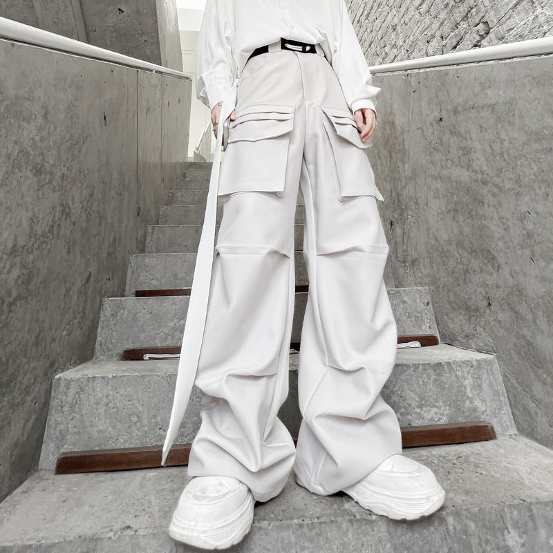 These wide pants feature distinctive front pockets that create a beautiful silhouette.