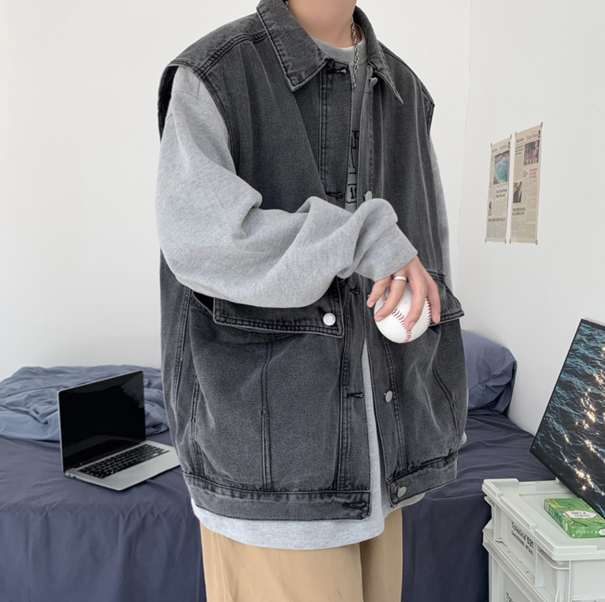 This year's trend! Introducing the popular denim vest.