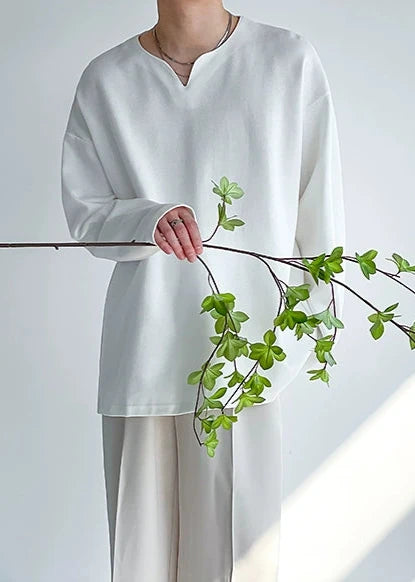 メンズファッションの新定番!韓国スタイルのシンプルなデザインのVネックTシャツ!