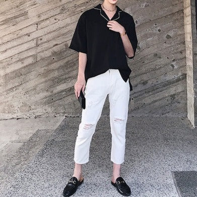 The moderate amount of skin showing around the neckline creates a mature Korean summer style.