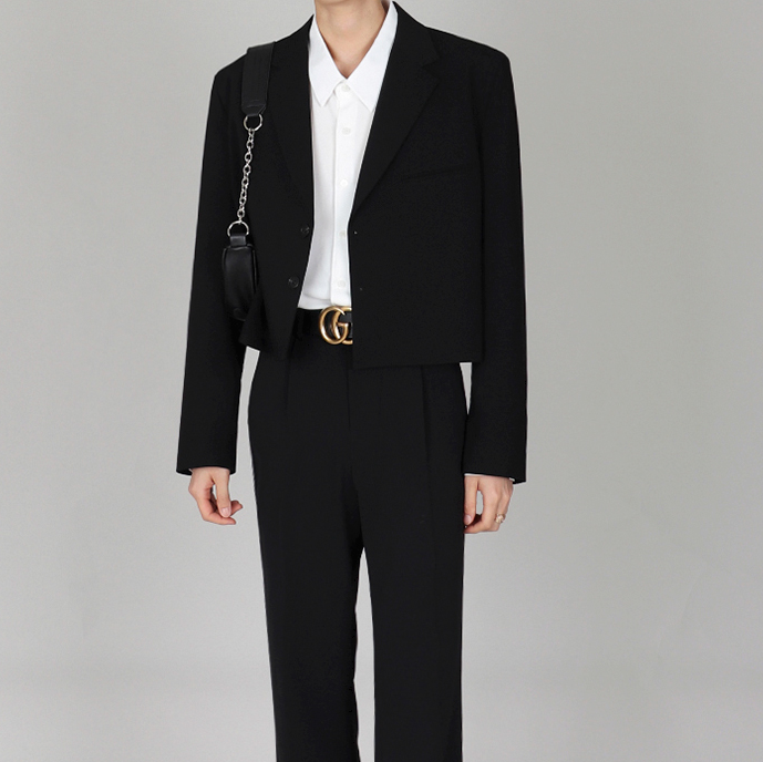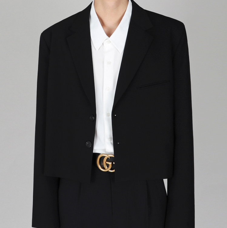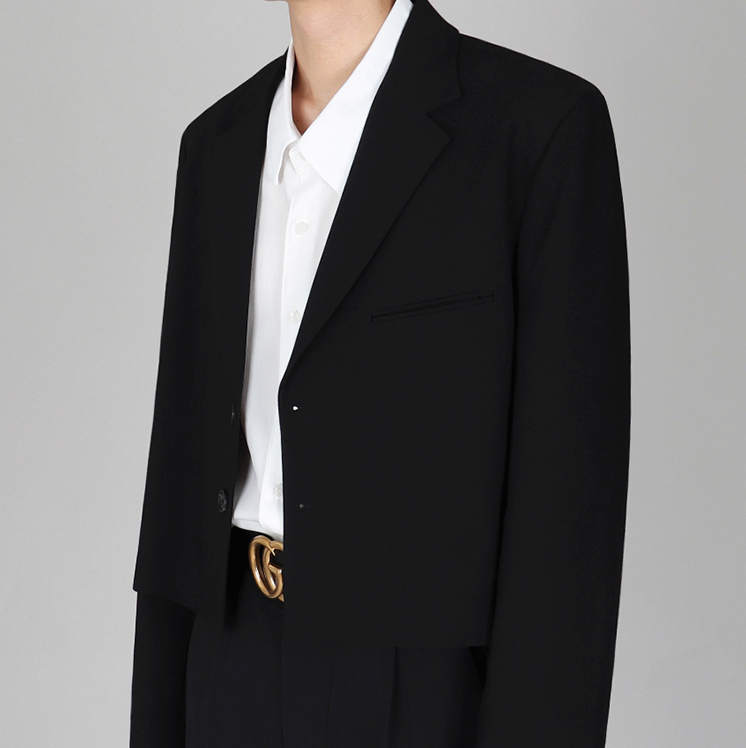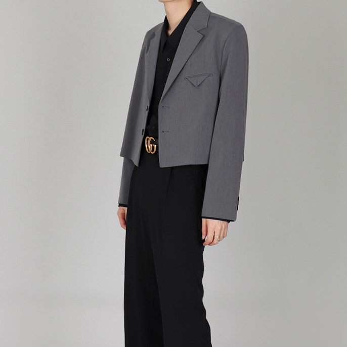 全体の上半身の比率が小さくなるので、着用するだけですらっとした印象に◎