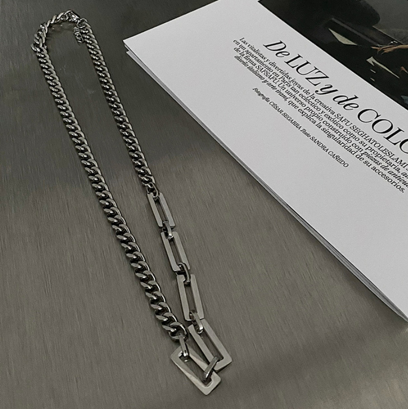 フロントに4つのブロックがついた重厚感溢れる韓国っぽネックレス🇰🇷